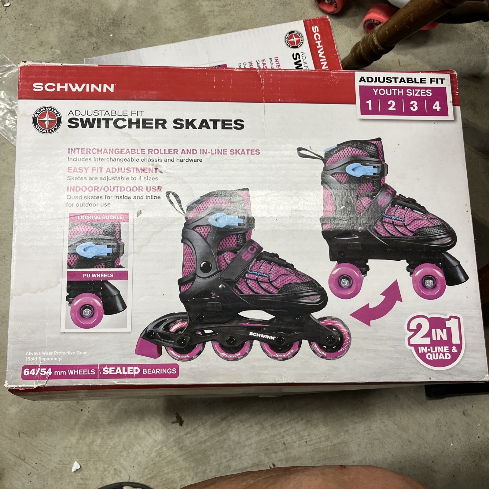 Girls Schwinn Adjustable Fit Switcher 2 in 1 Inline/Quad Skates Sizes 1-4 Pink