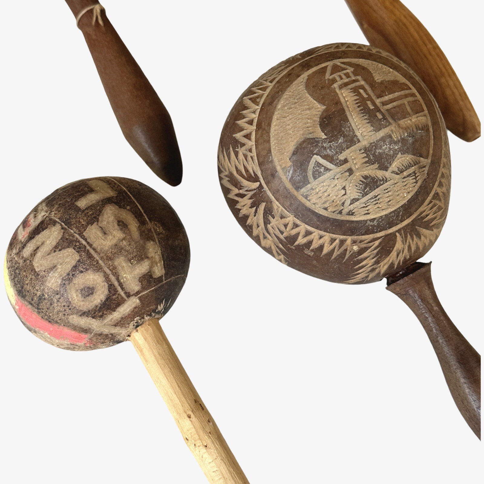 как выглядит Vintage Hand Carved Folk Art Maracas Set Of Four /Vintage Castanets, Set Of Two фото