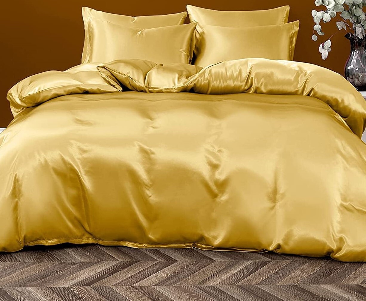 See All Pictures- 7-Pcs. Satin King/Queen Comforter Cover Set Gold Black