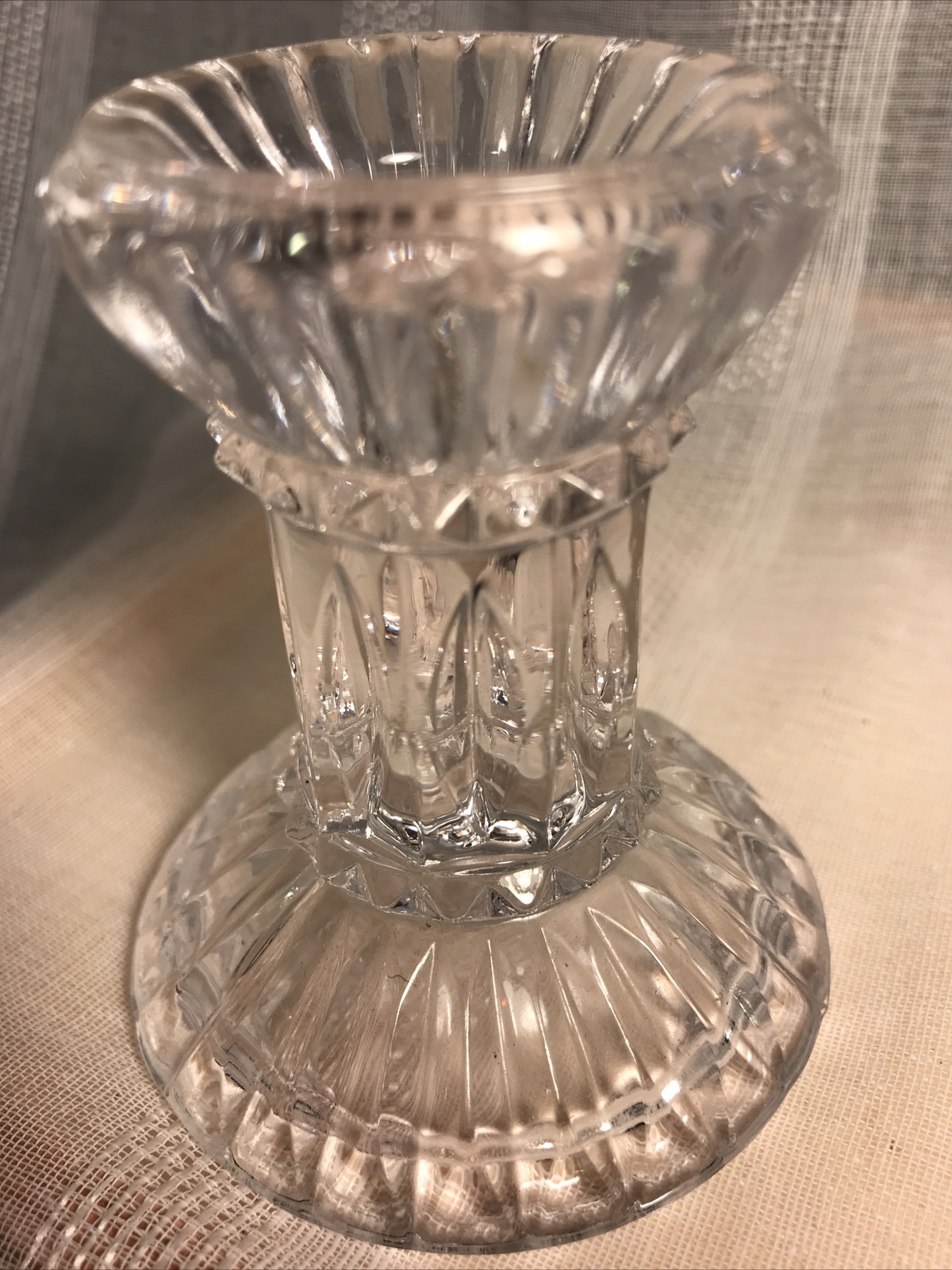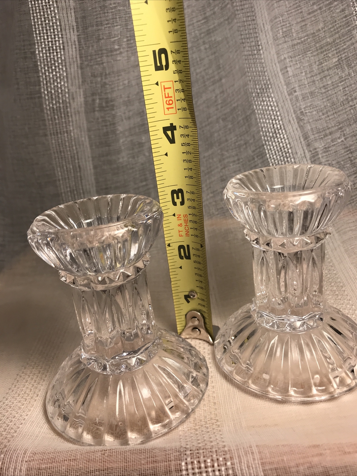 как выглядит Clear Glass Candle Stick Holders, Pair 2 Decorative Collectible Matching Ridges фото