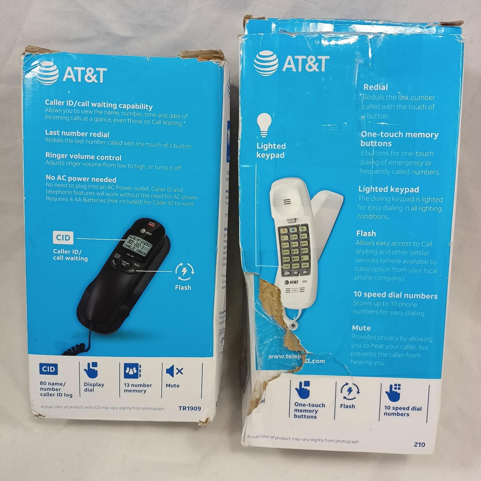 2 - AT T TRIMLINE Phone Corded Home Easy Mount Black White New TR1909 210