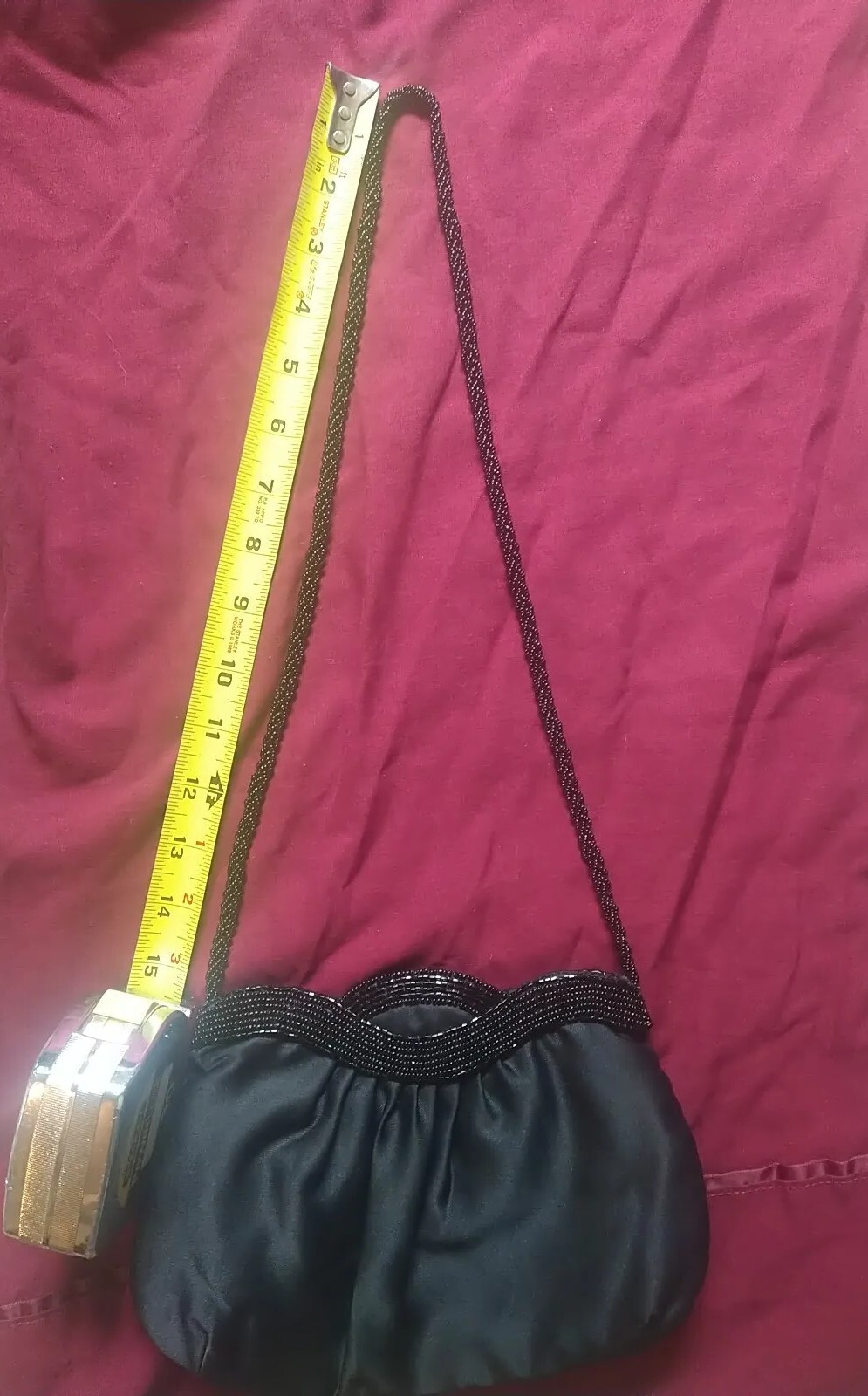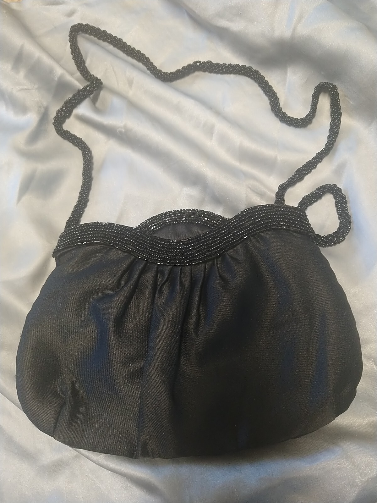 как выглядит Black Satin/Beaded Vintage ATG Handbag фото