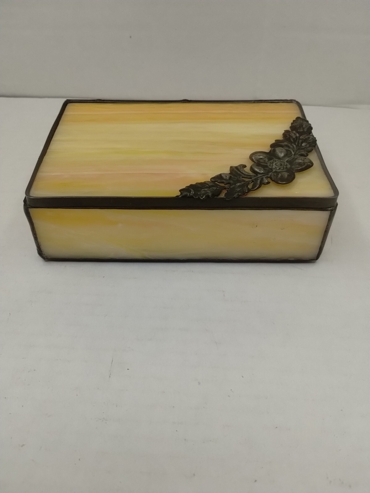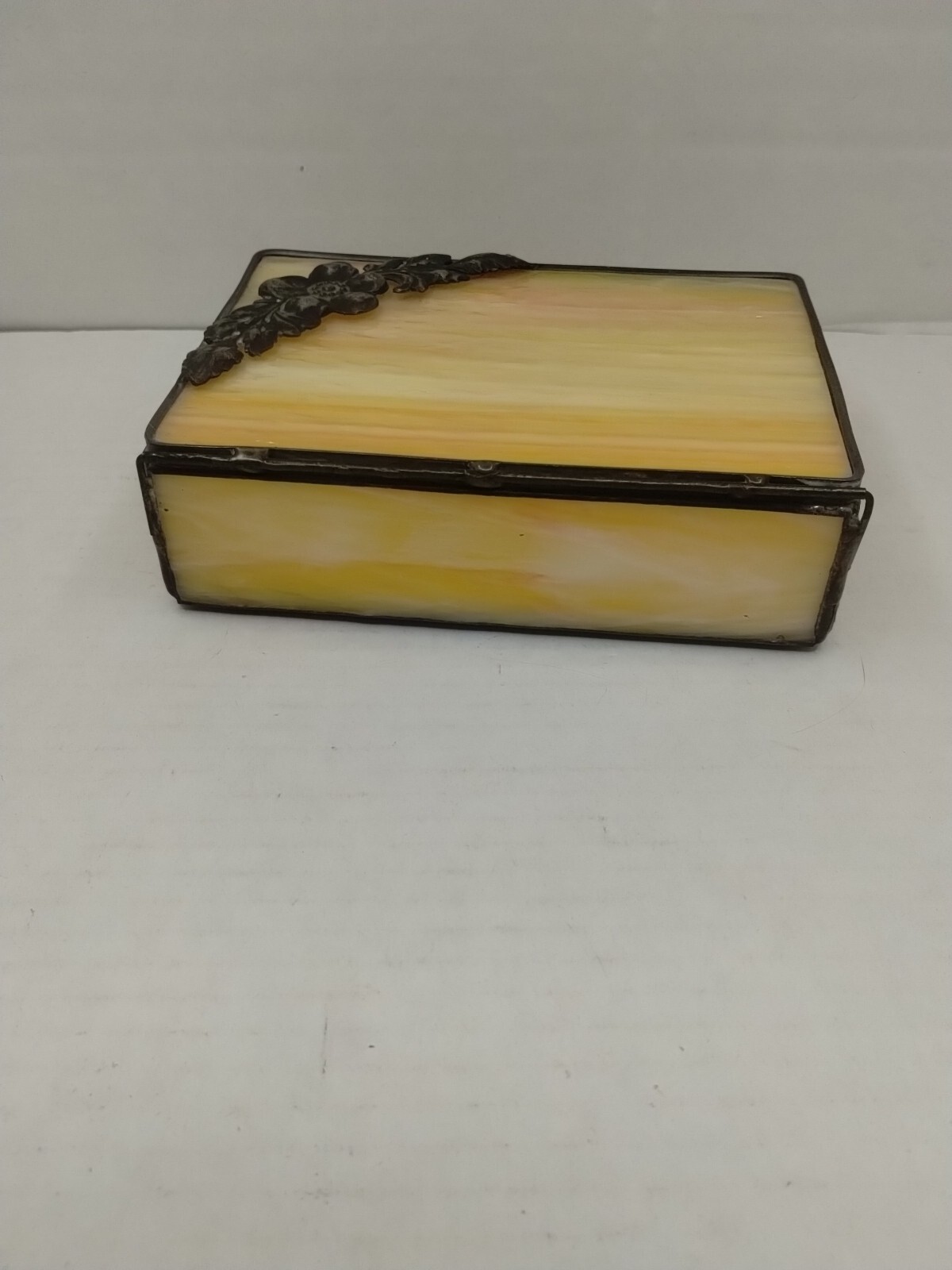 как выглядит Vintage Leaded Stained Glass Mirrored Trinket Jewelry Box фото