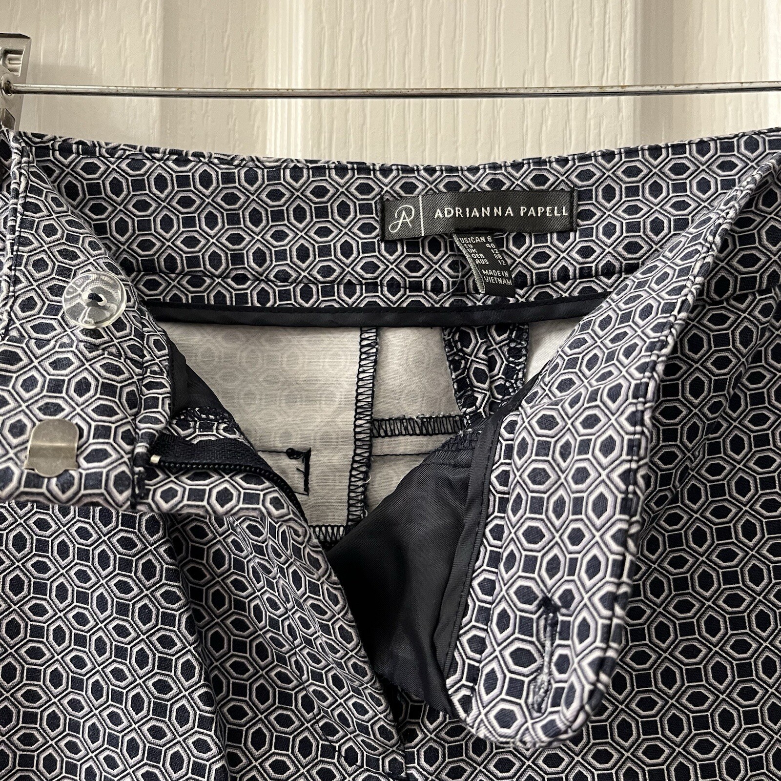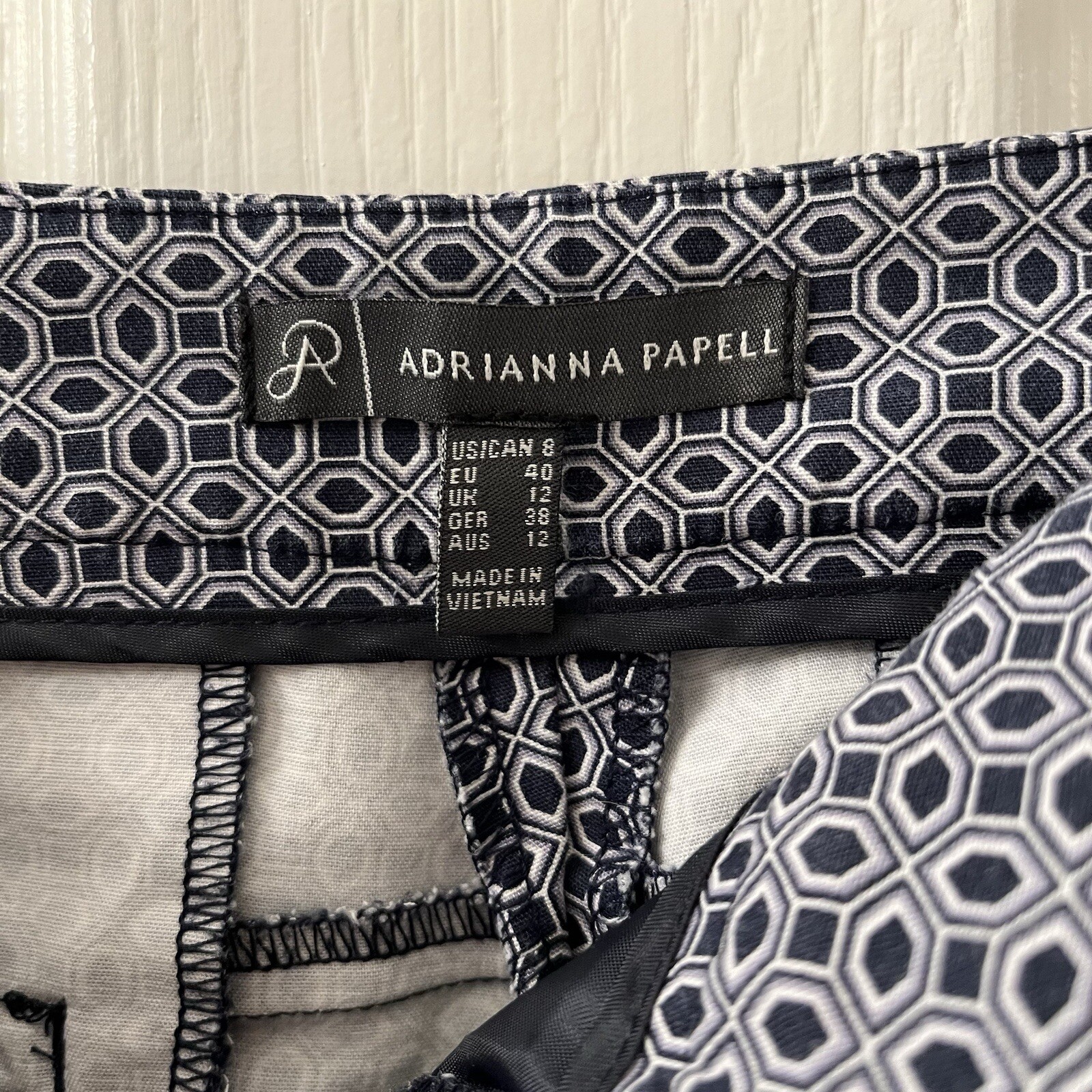 Adrianna Papell Women's Blue White Geometric Print Pull On Ankle Pants Size 8