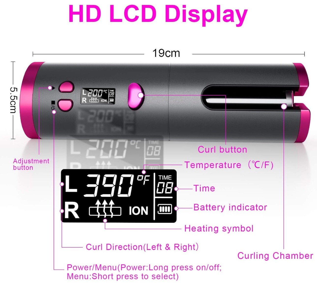 Fezax Cordless Auto Hair Curler, Automatic Curling Iron with LCD Display
