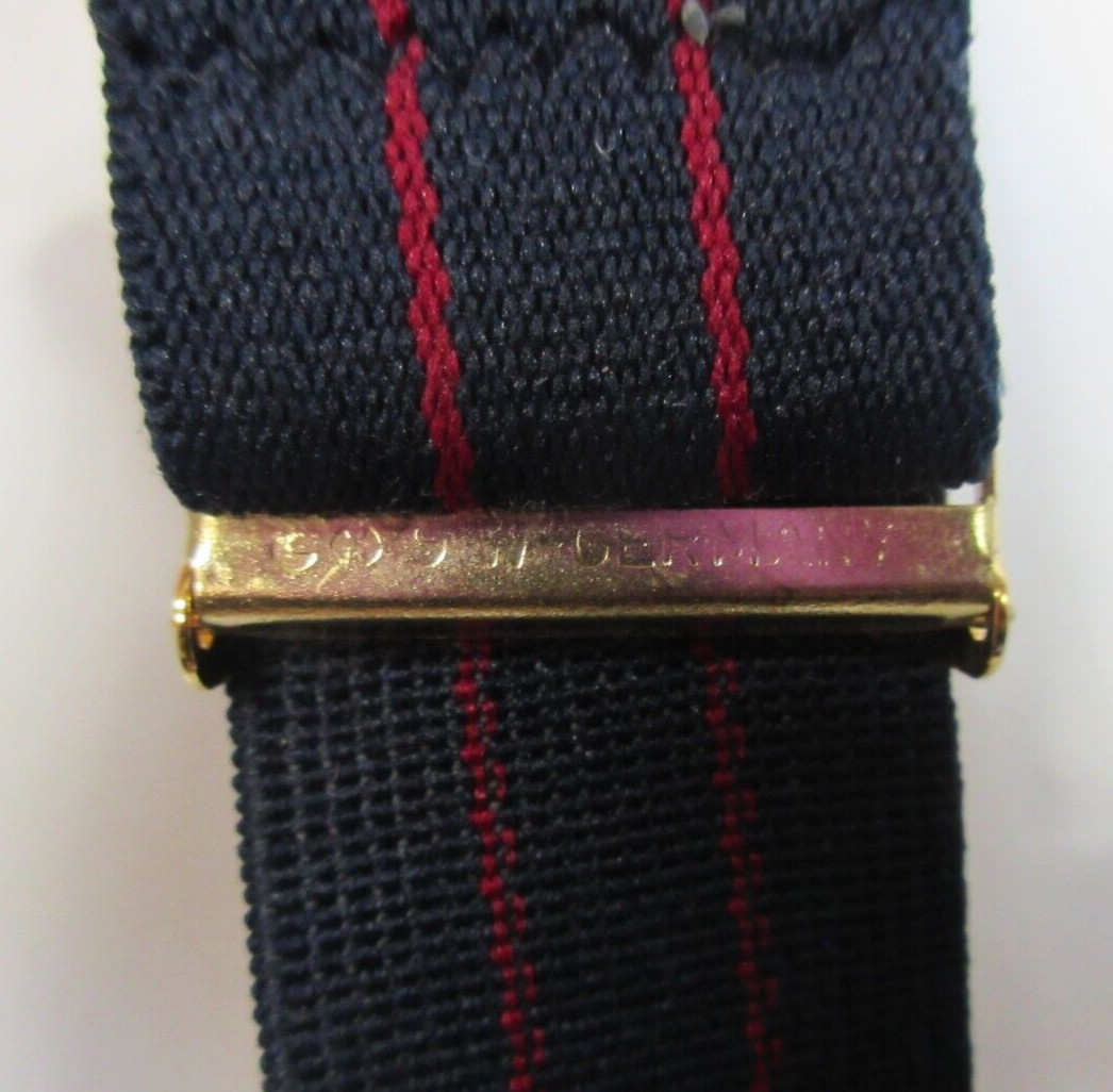 Vintage CAS Button Adjustable Leather Black/Red Striped Suspenders West-Germany
