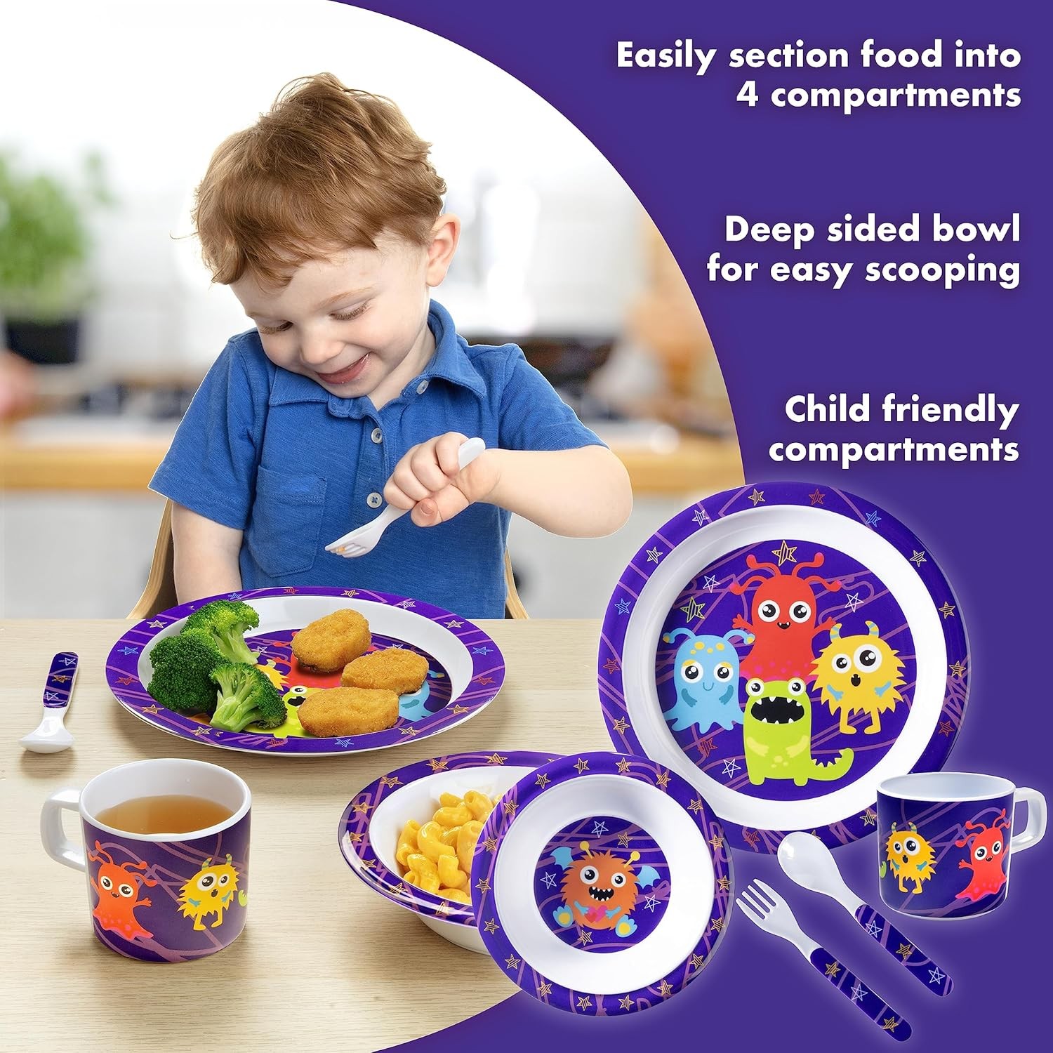 Bentology 5Pc Mealtime Feeding Set Monster -Great Gift for Parents Their Kids