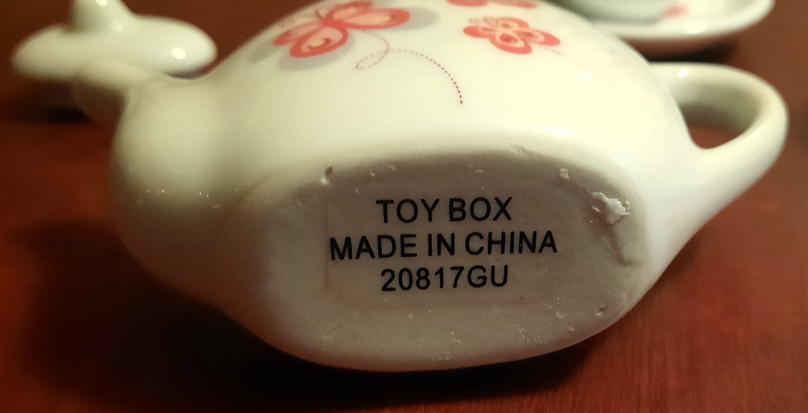 как выглядит Childs Mini Ceramic Tea Set w/Red Butterflies-11 piece w/cups, saucers, teapot фото