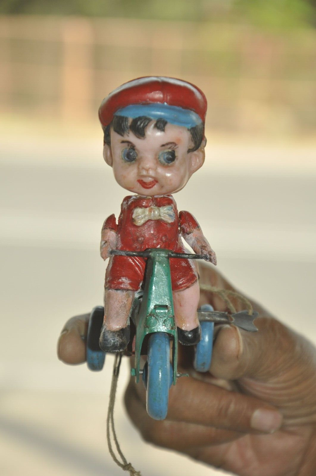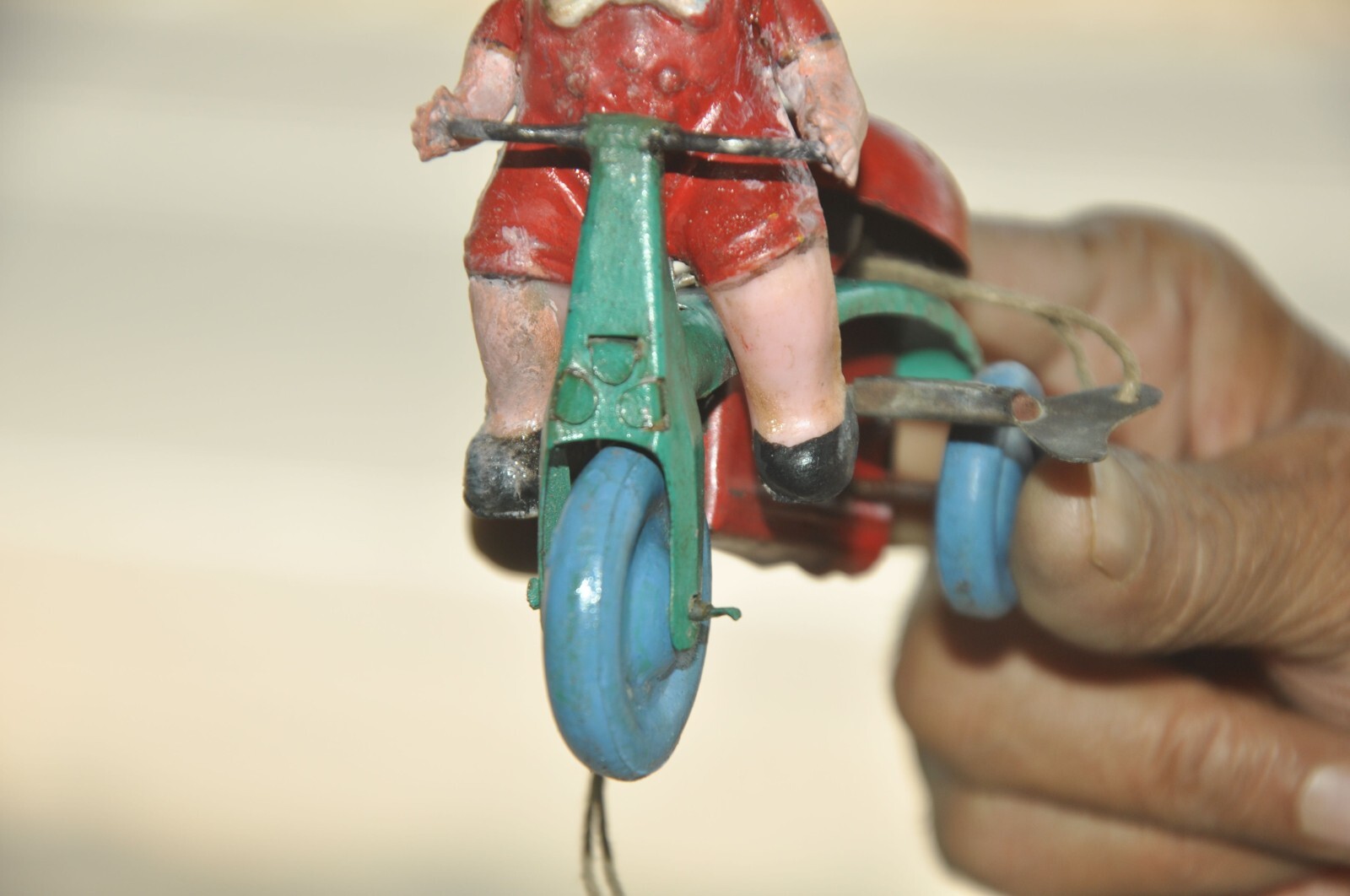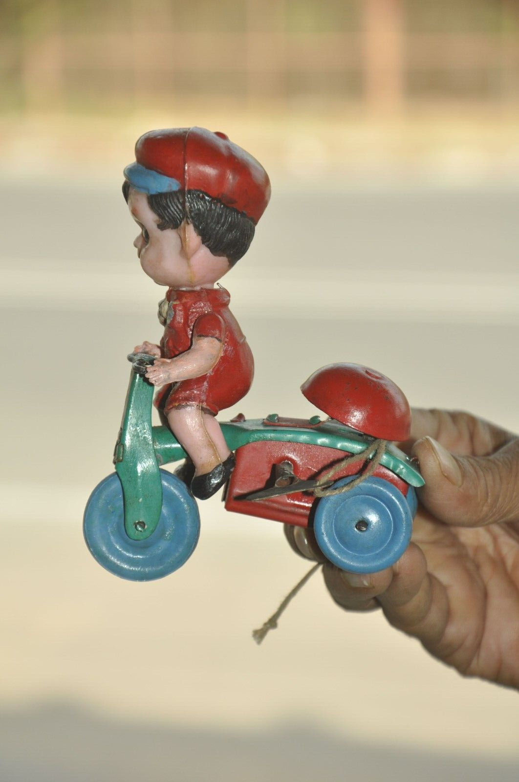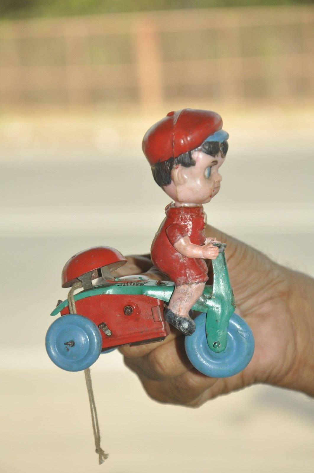 как выглядит Vintage Wind Up Boy Riding Tricycle Litho Tin Toy, Japan фото