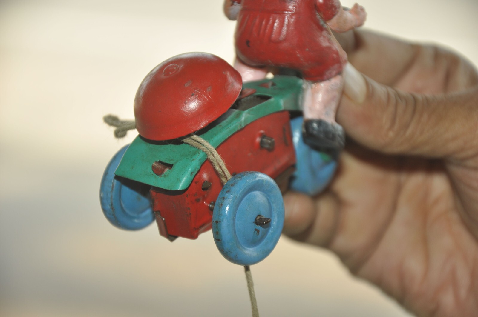 Vintage Wind Up Boy Riding Tricycle Litho Tin Toy, Japan