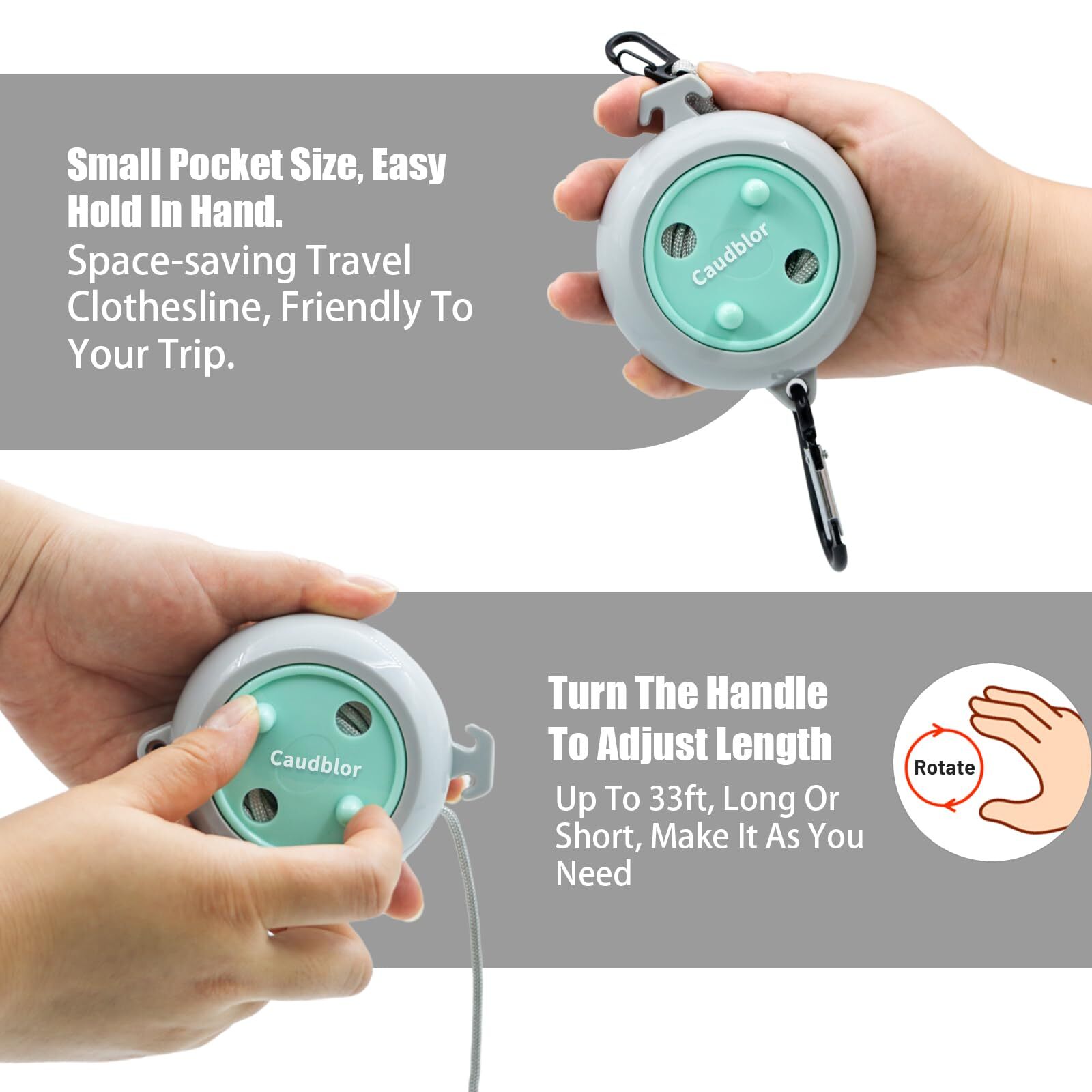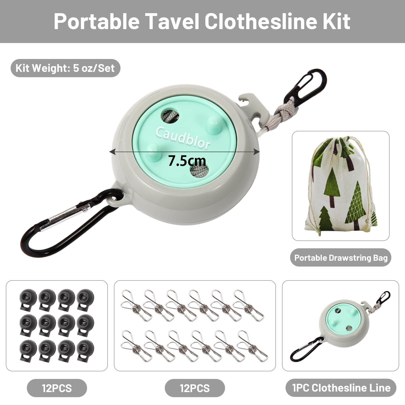 Portable Travel Clothesline Cord Caudblor Adjustable 33ft Camping Clothes lin...