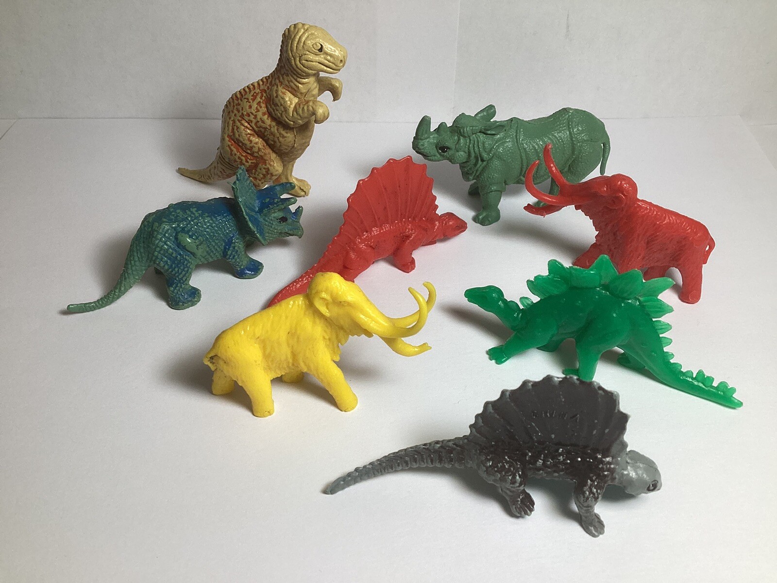 как выглядит MIXED LOT OF 8 MINIATURE DINOSAURS TOY FIGURES MULTIPLE COLORS фото
