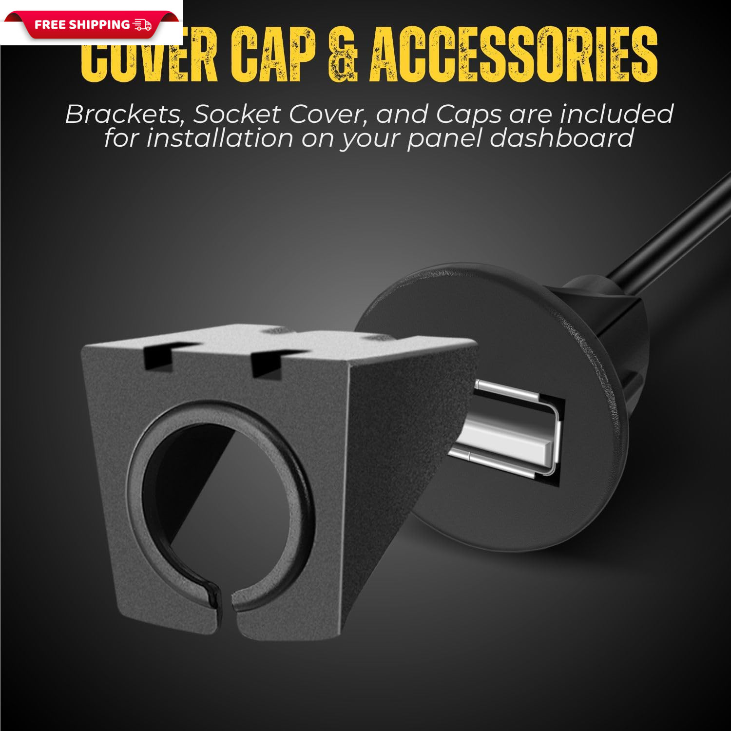 TNP USB Flush Mount Cable W/Buckle- Dashboard Panel Dash Mount 1 Port USB Socket