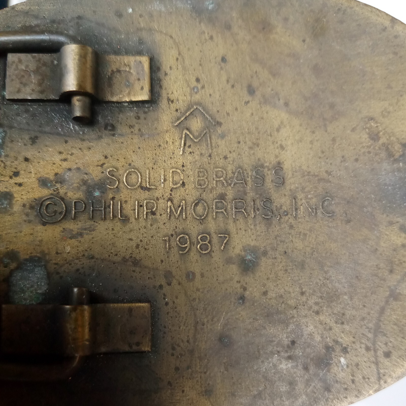 Marlboro Longhorn Star Belt Buckle Solid Brass 1987 Philip Morris 3 Vintage