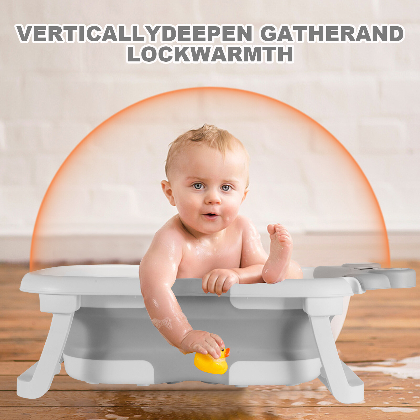 Collapsible Baby Bathtub Portable Baby Bath Tub with Cushion and Thermometer