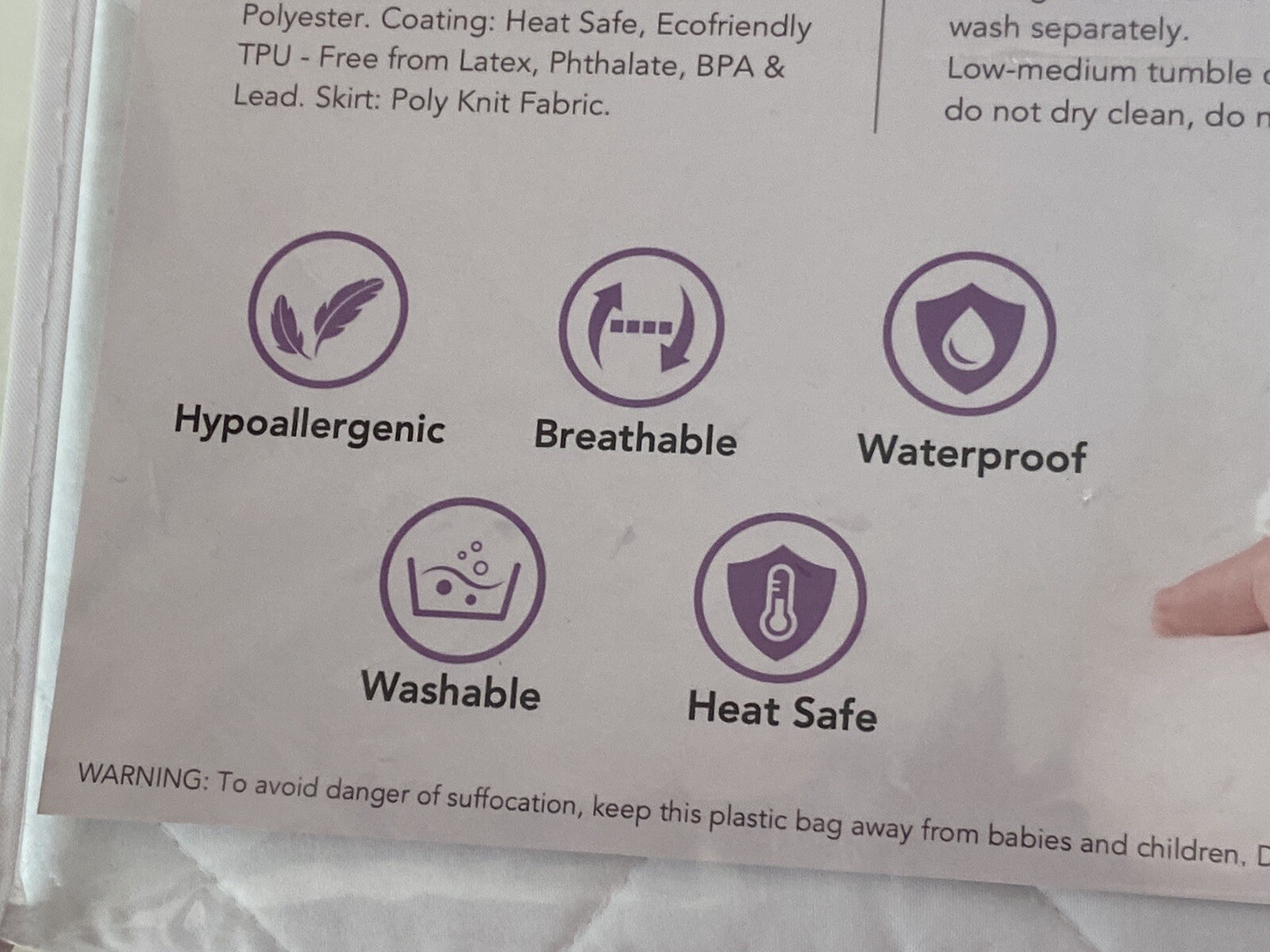 Особенности: Hypoallergenic, Machine Washable, Waterproof