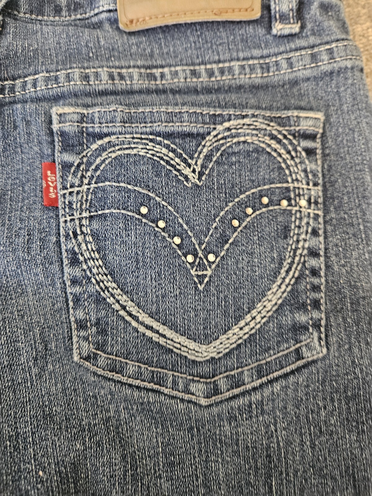 как выглядит Levis Girl Heart Gem Stone Bling Straight Leg Jeans Sz 16 Reg. Adjustable Waist фото