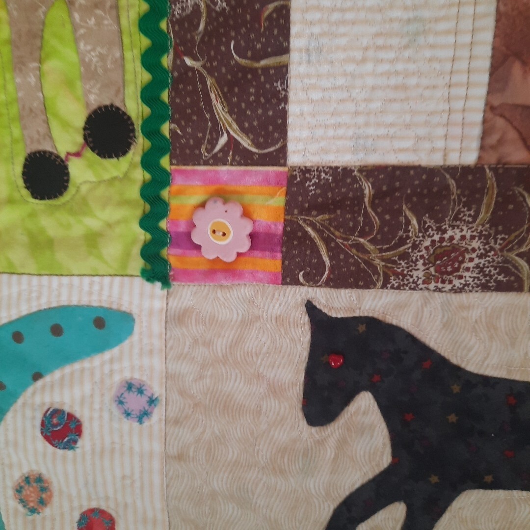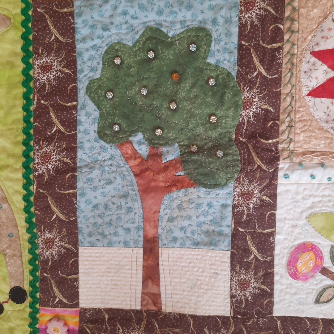 Finished Homemade Hand Appliqued Wall Hanging Quilt, Tree, Animals, Flowers