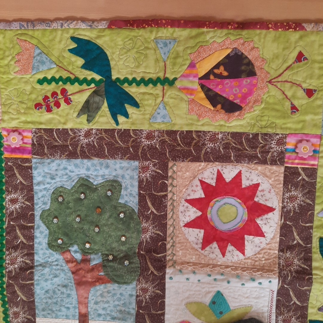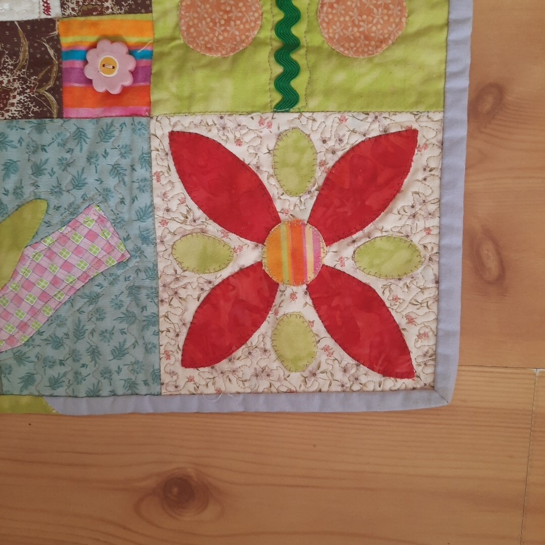 как выглядит Finished Homemade Hand Appliqued Wall Hanging Quilt, Tree, Animals, Flowers фото