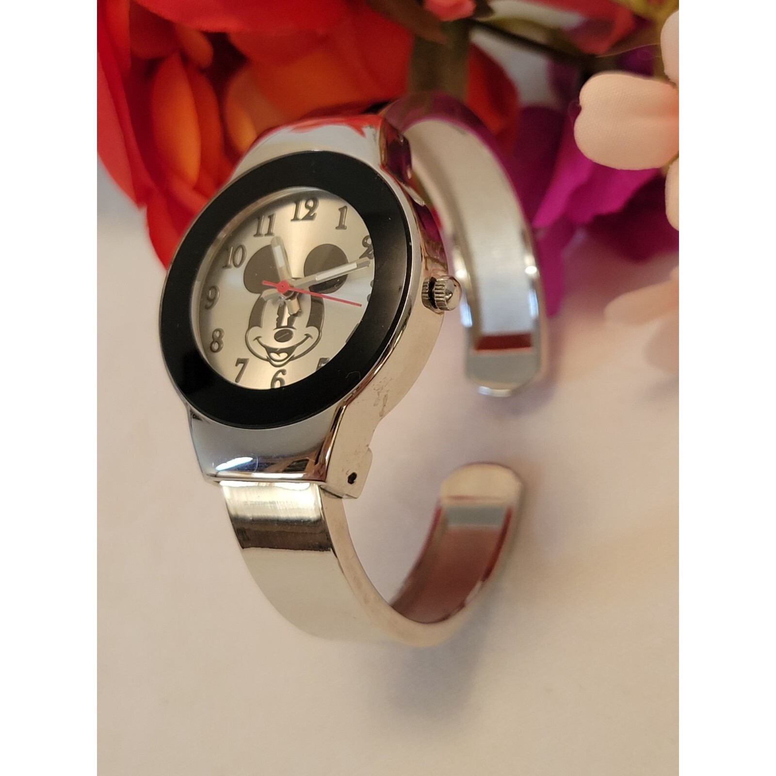 • Vintage Disney Mickey Mouse Watch Stainless Steel Clamp Style Band Classic Desig