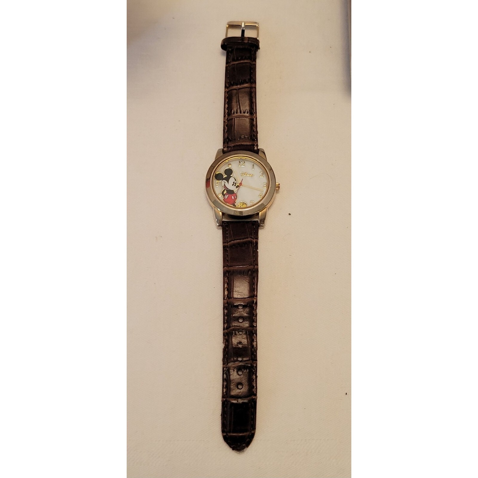 как выглядит Vntg Disney Mickey Mouse Accutime Watch Brown Leather Strap Gold-Tone Stainless фото