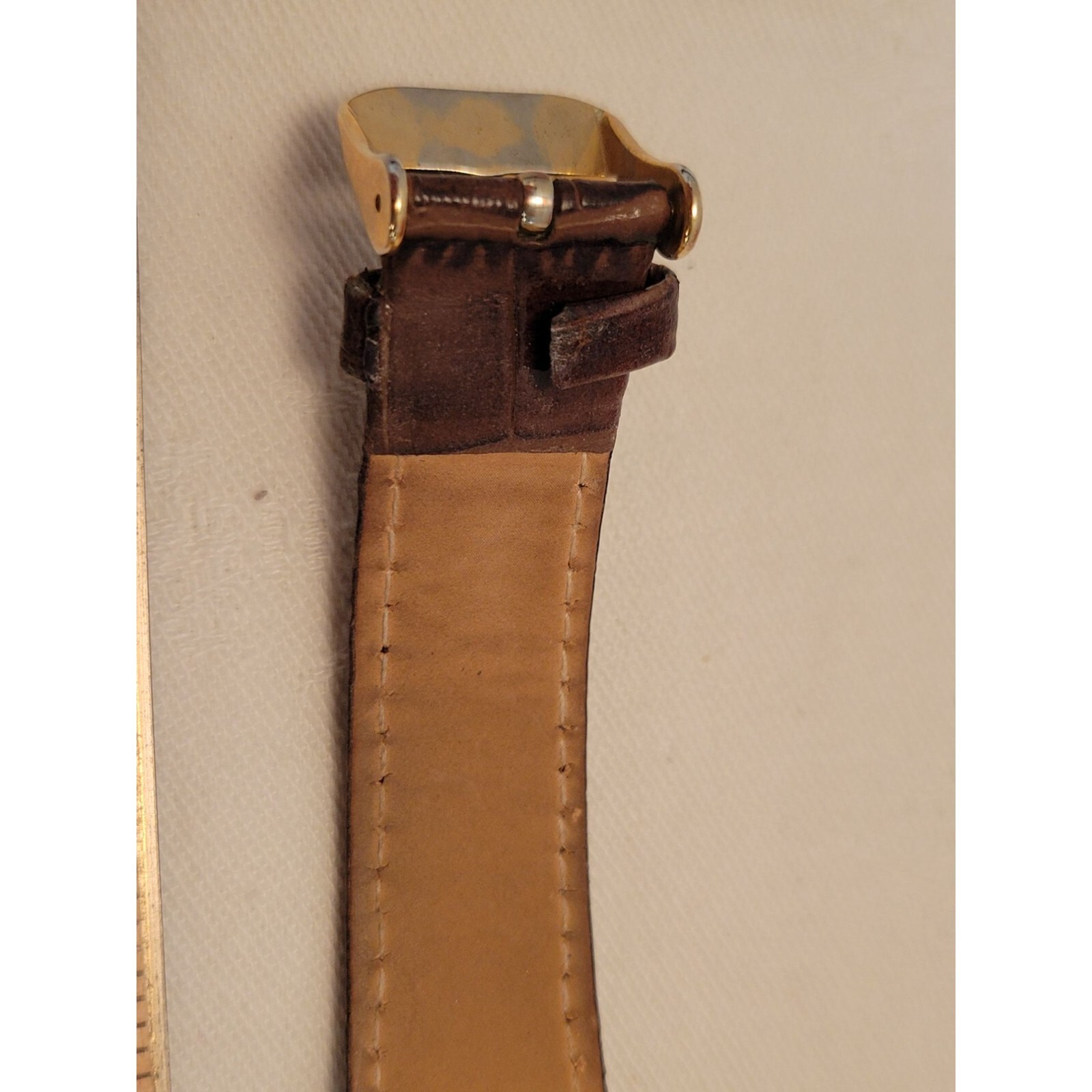 • Vntg Disney Mickey Mouse Accutime Watch Brown Leather Strap Gold-Tone Stainless