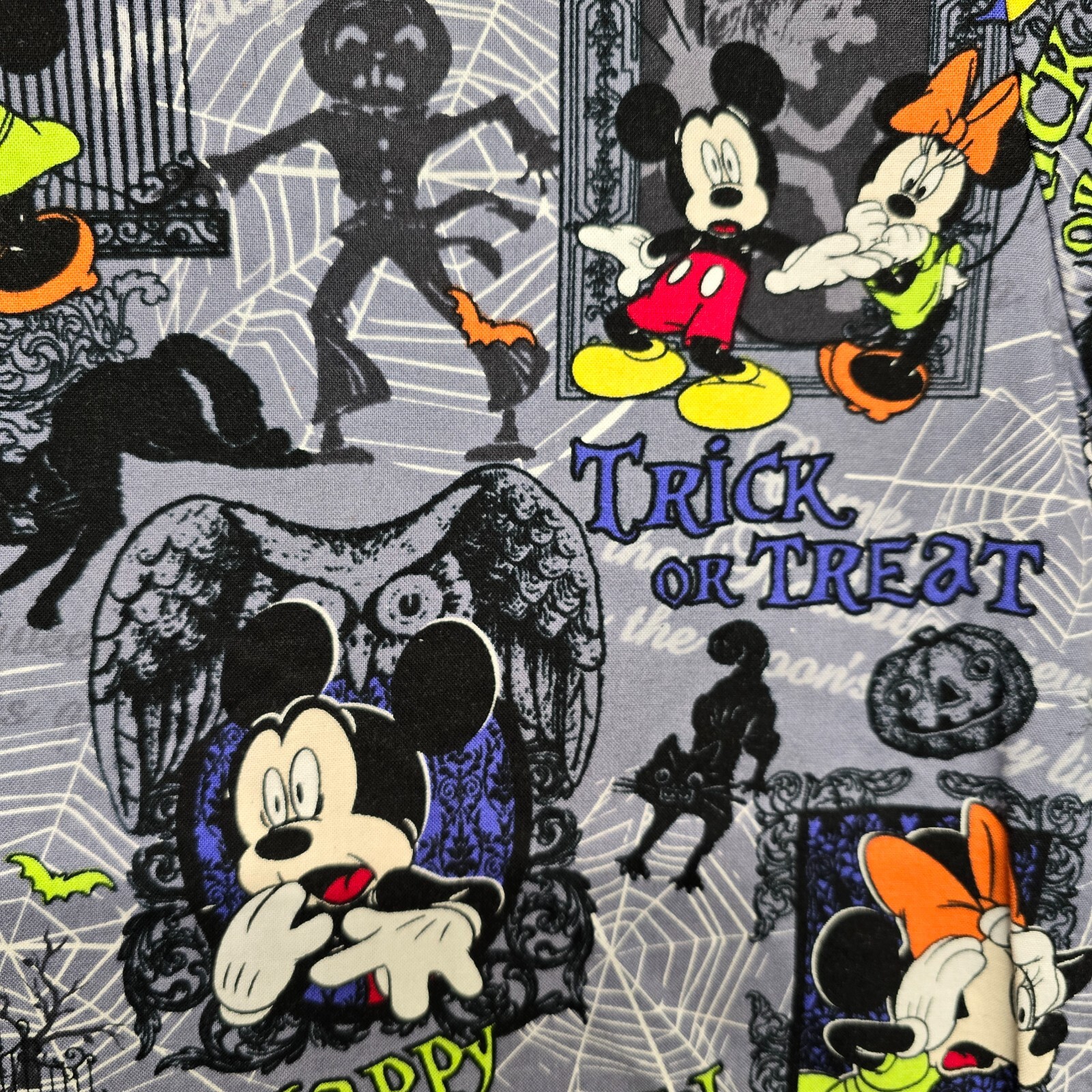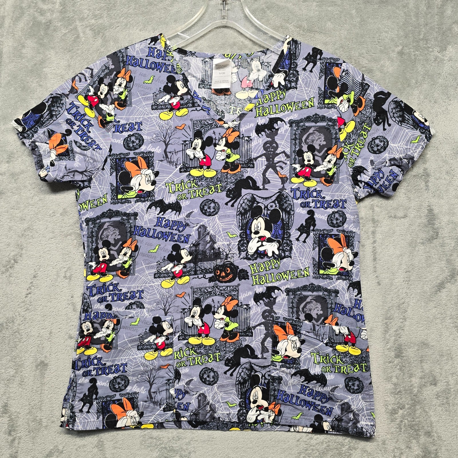 Disney Scrub Top Womens Small Mickey Minnie Mouse Halloween Trick or Treat
