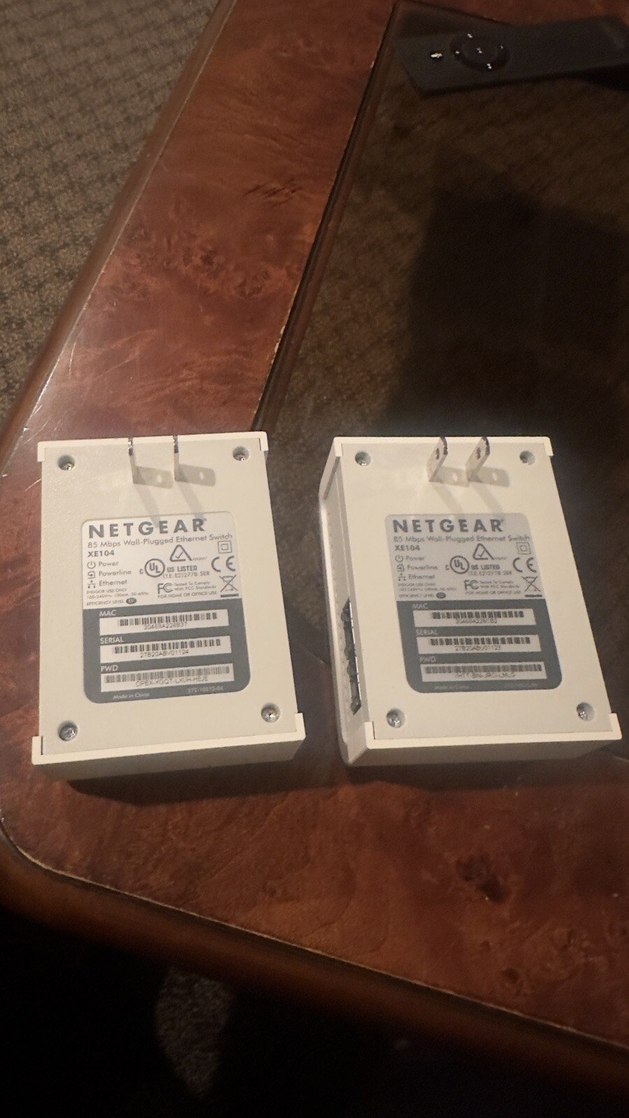 TWO Netgear XE104 85 Mbps Wall-Plugged Ethernet Powerline Switch 4 Port