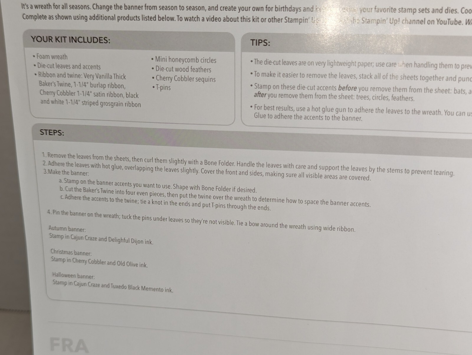 Stampin Up Season To Season Wreath Project Kit Christmas Cheer