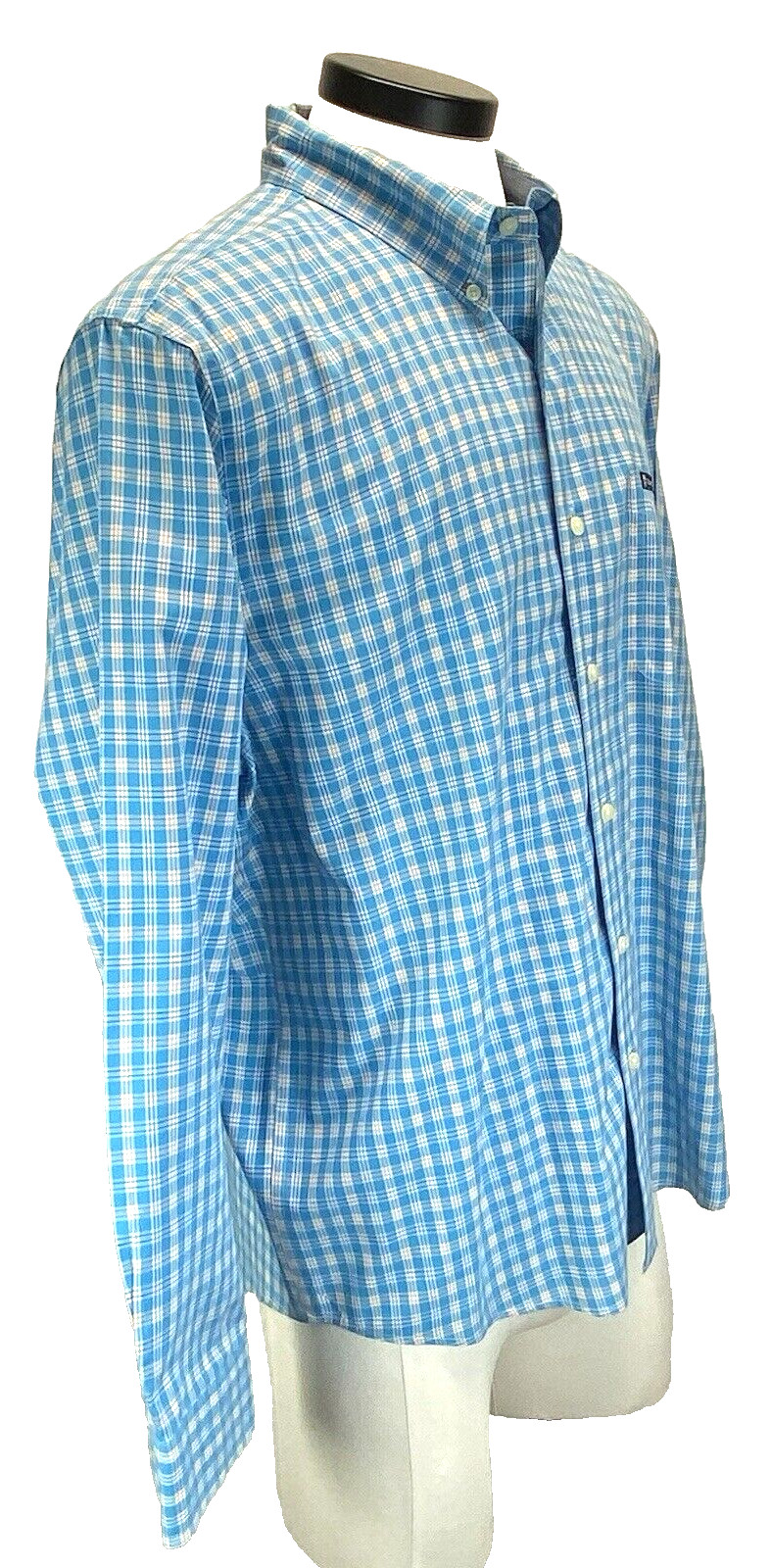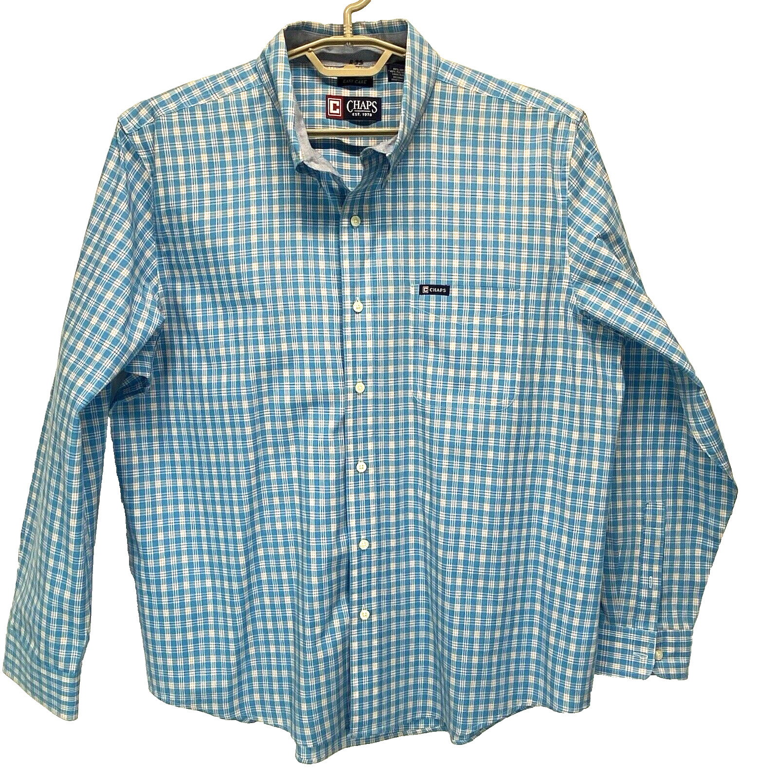 Chaps Men's Dress/Casual XL Shirt Blue Check Button Down Easy Care CottonPoly