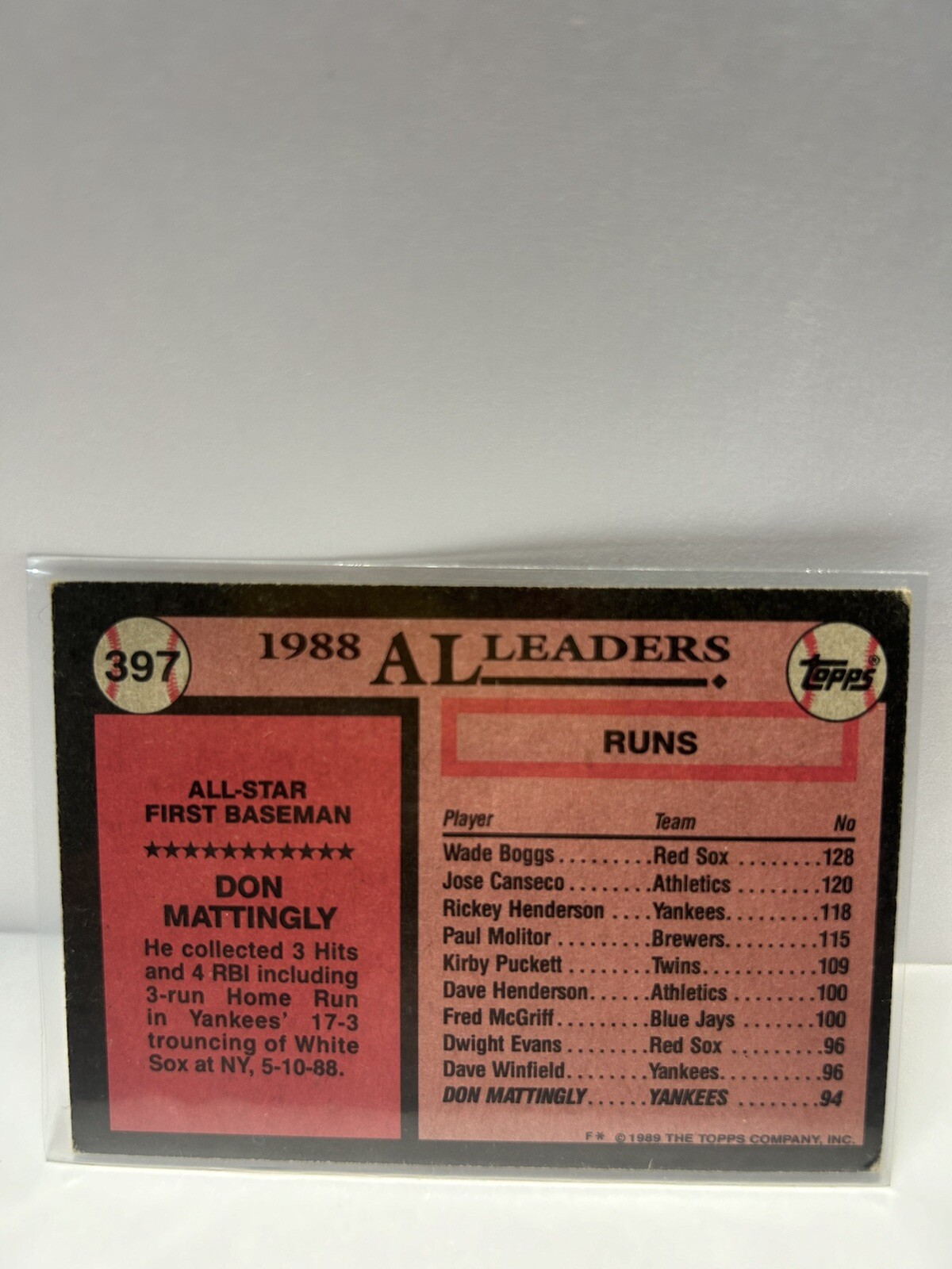 1 OF 1 ERROR CARD 1989 Topps Don Mattingly 397 Bunny Teeth READ DETAILS