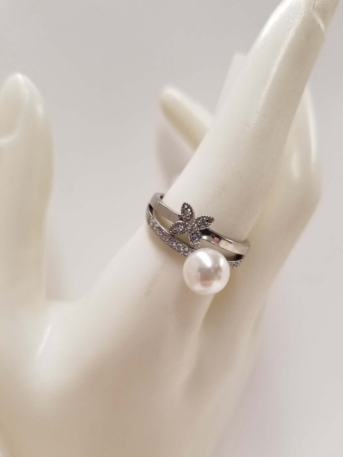 как выглядит Silver Tone Butterfly Pearl Size 9 Ring фото
