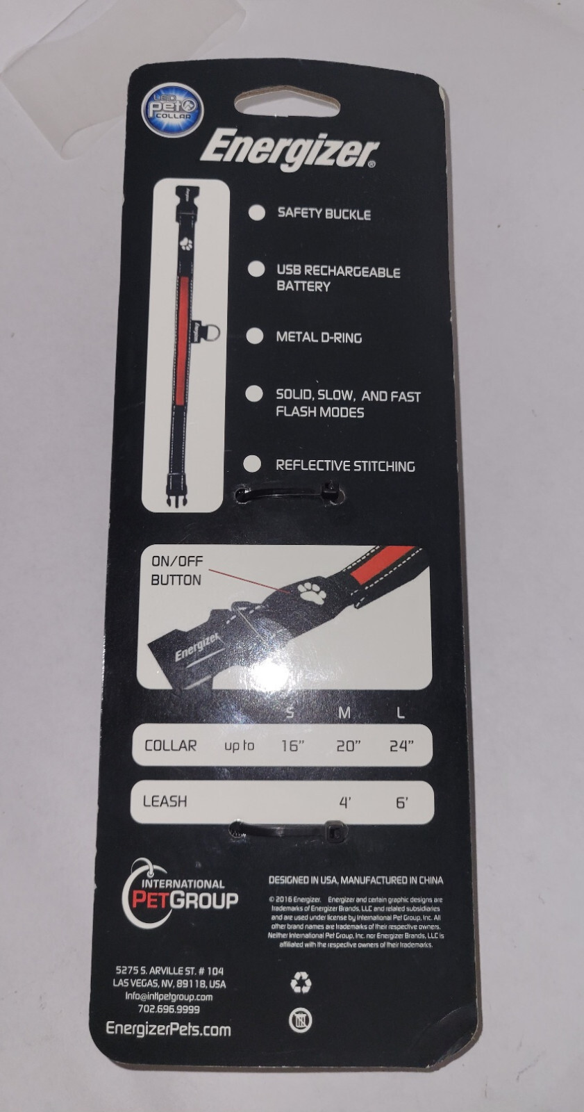 Energizer LED Pet Collar -USB Rechargeable Battery Size SMALL 16 Flashes Solid