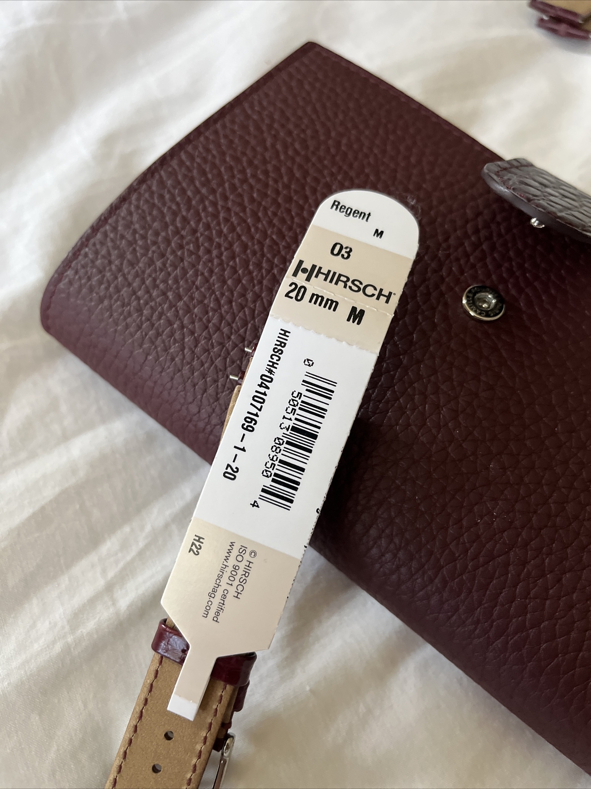 как выглядит Hirsch Regent Genuine Alligator Watch Strap in Burgundy - 20mm / Medium фото