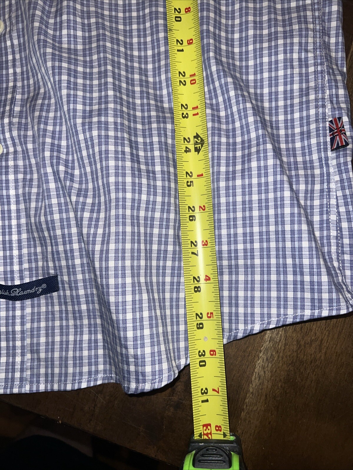 как выглядит English Laundry Blue Checked Long Sleeve Button Down Shirt Mens Size 16 34/35 фото
