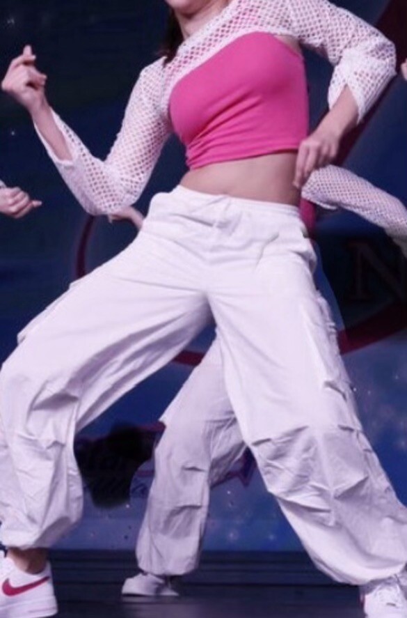 как выглядит Dazy Mesh Dance Overlay With Shein Hip Hop Cargo Pants - White фото
