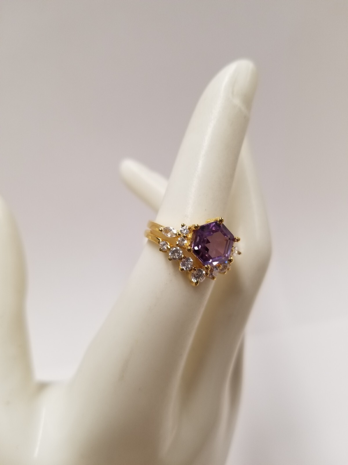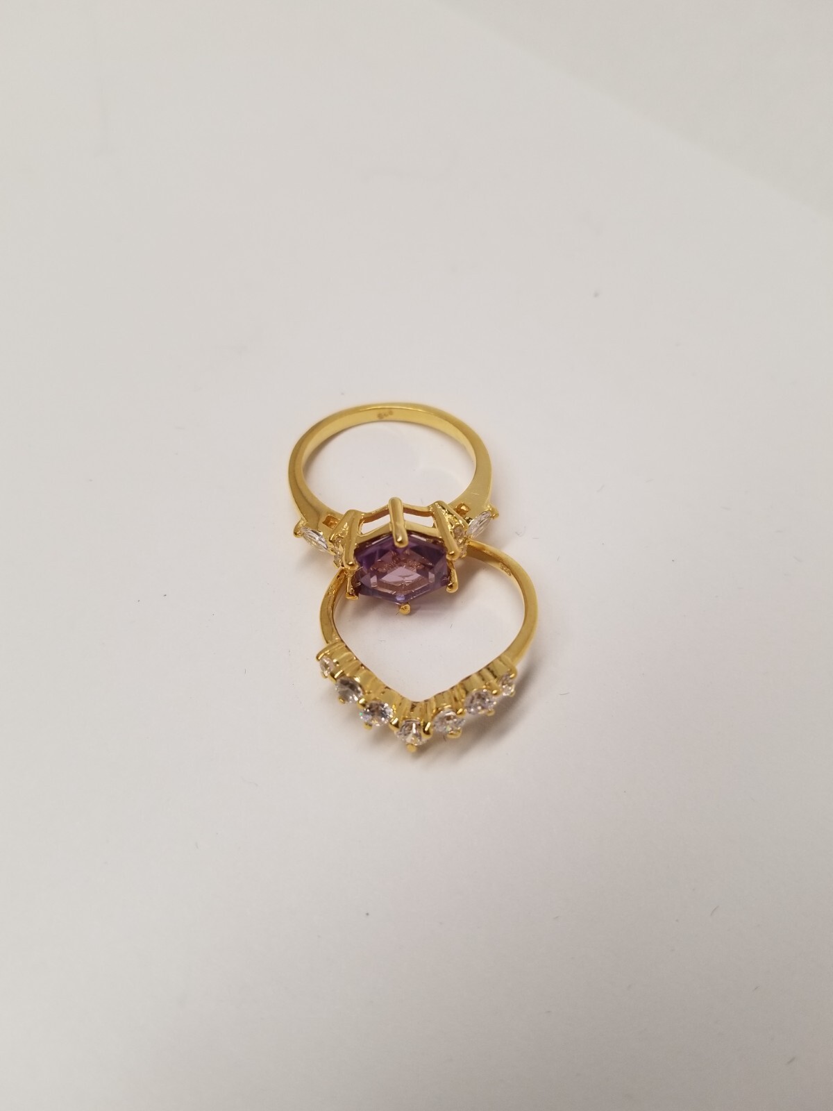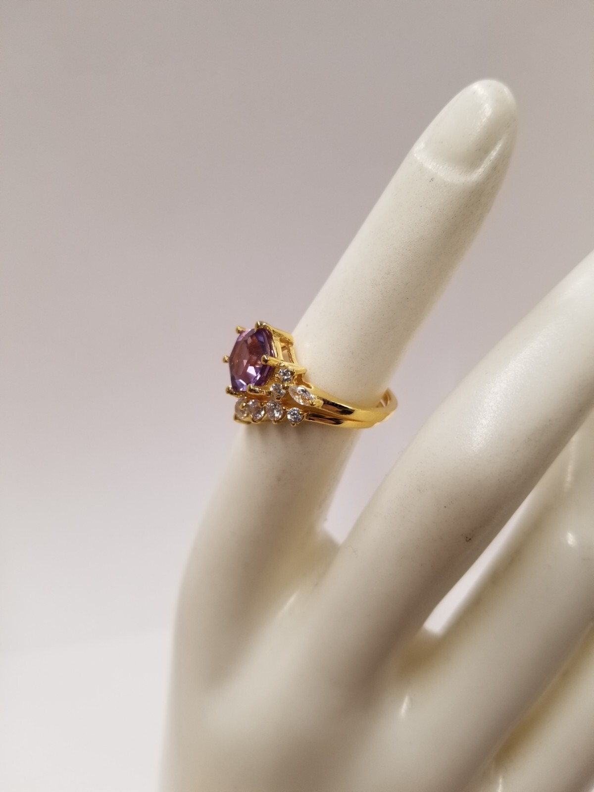 как выглядит Gold Tone Amethyst Marquise Stacked Crown Ring Size 6 фото