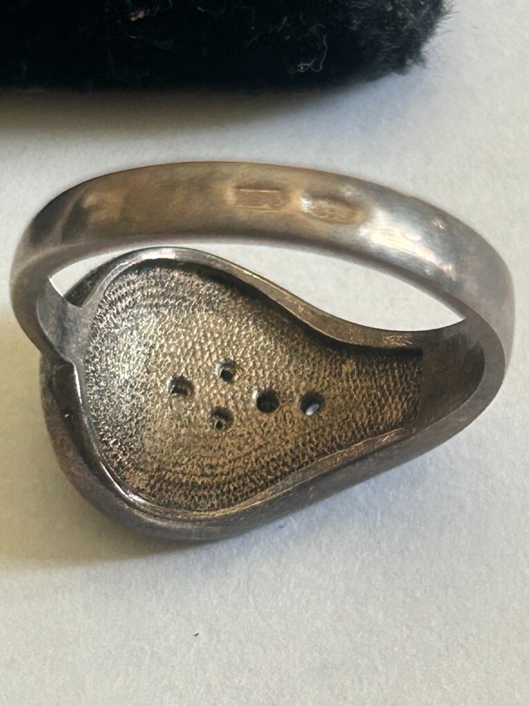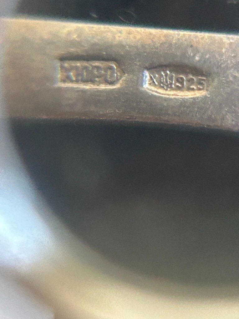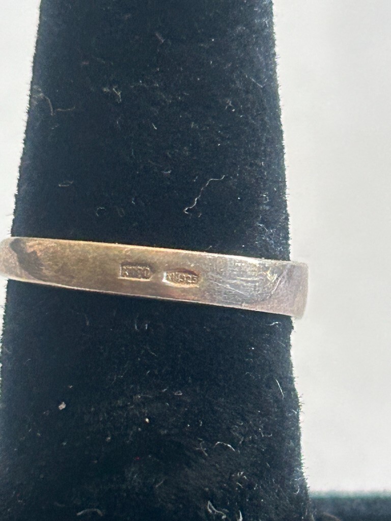 как выглядит VTG Sterling Silver .925 Handmade w/Black Enamel 5 Crystals Women Ring Sz.6.5 фото