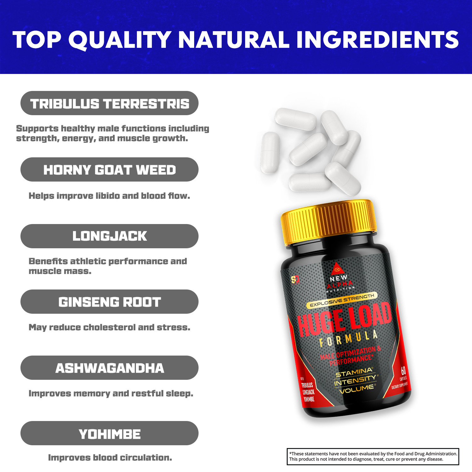 Huge Load Formula Optimizes Strength, Boost Performance and Stamina 60 Capsules