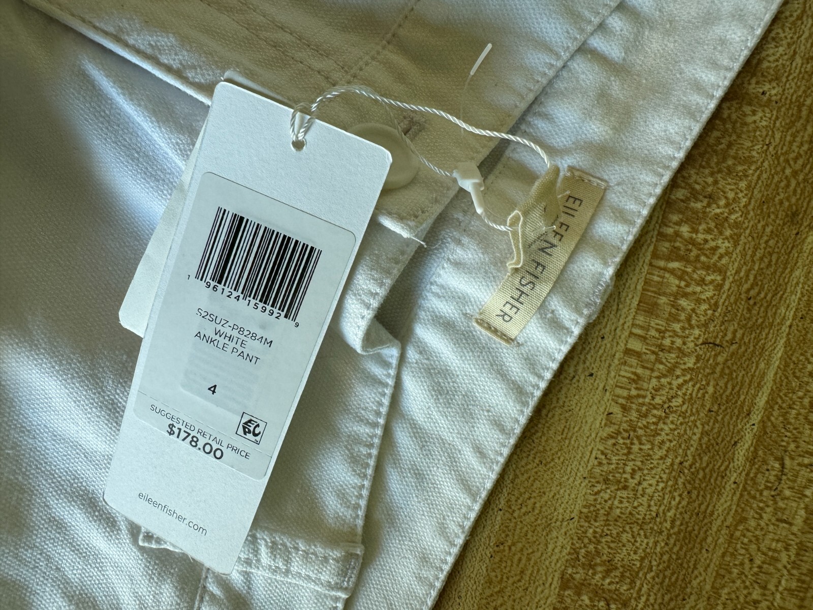 NEW EILEEN FISHER COTTON HEMP TAPERED PANTS ANKLE WHITE ORGANIC POCKETS SIZE 4
