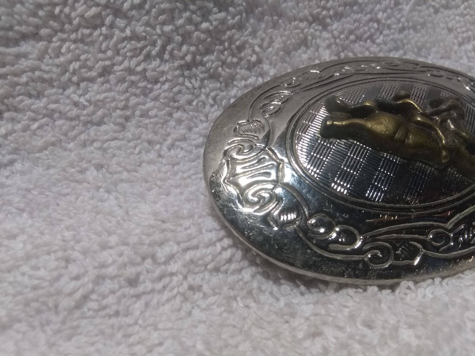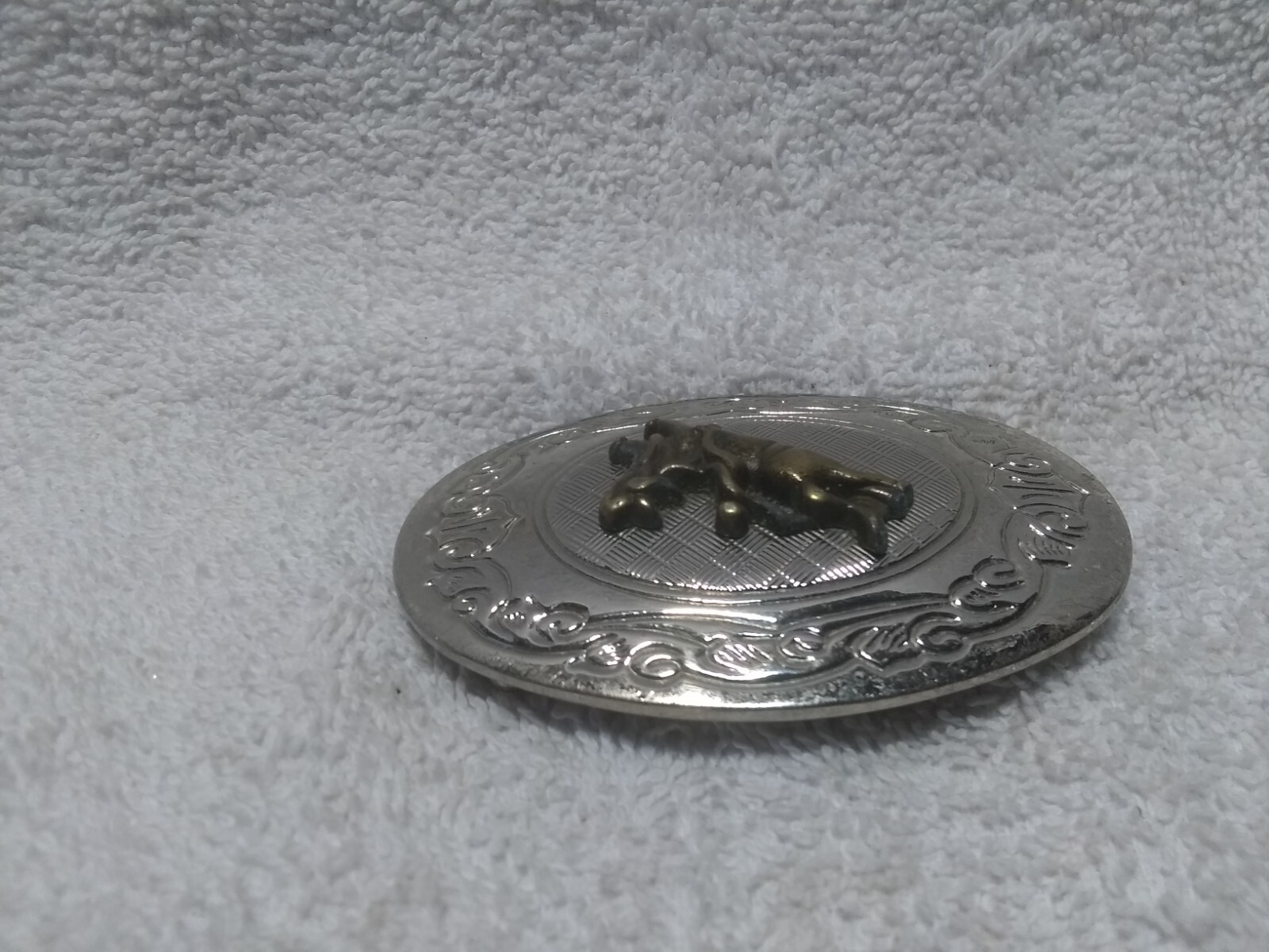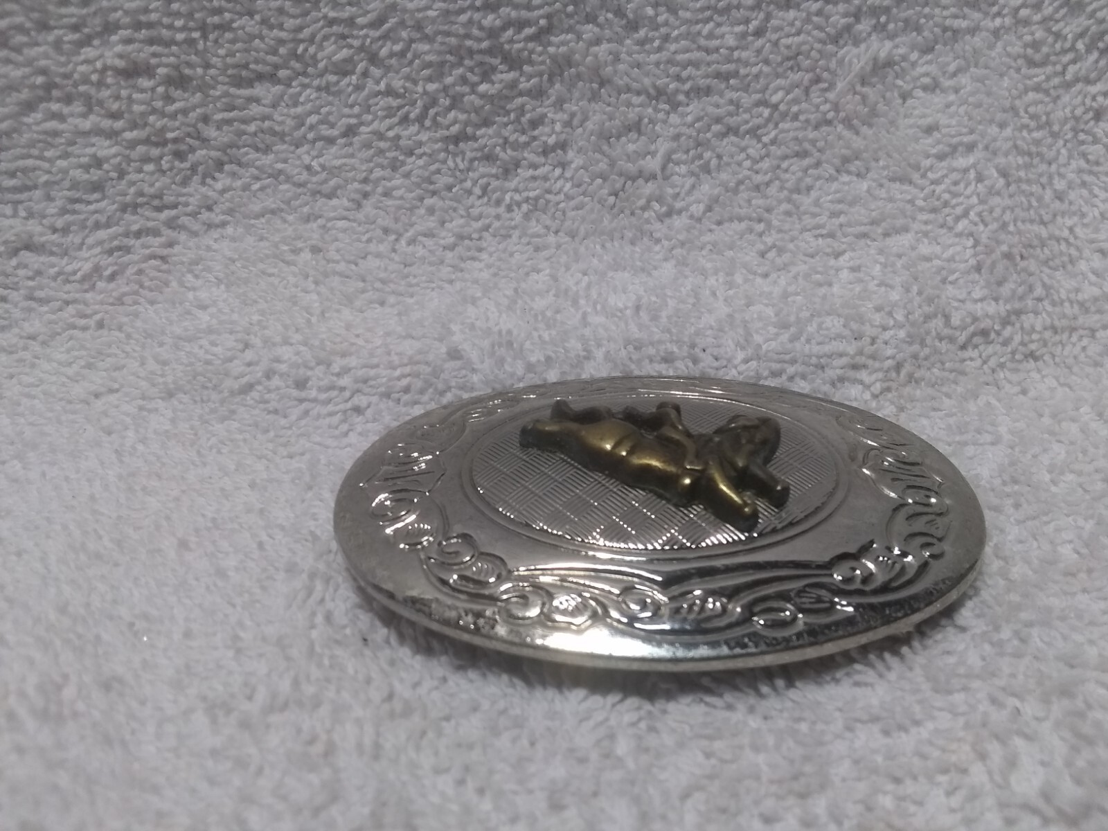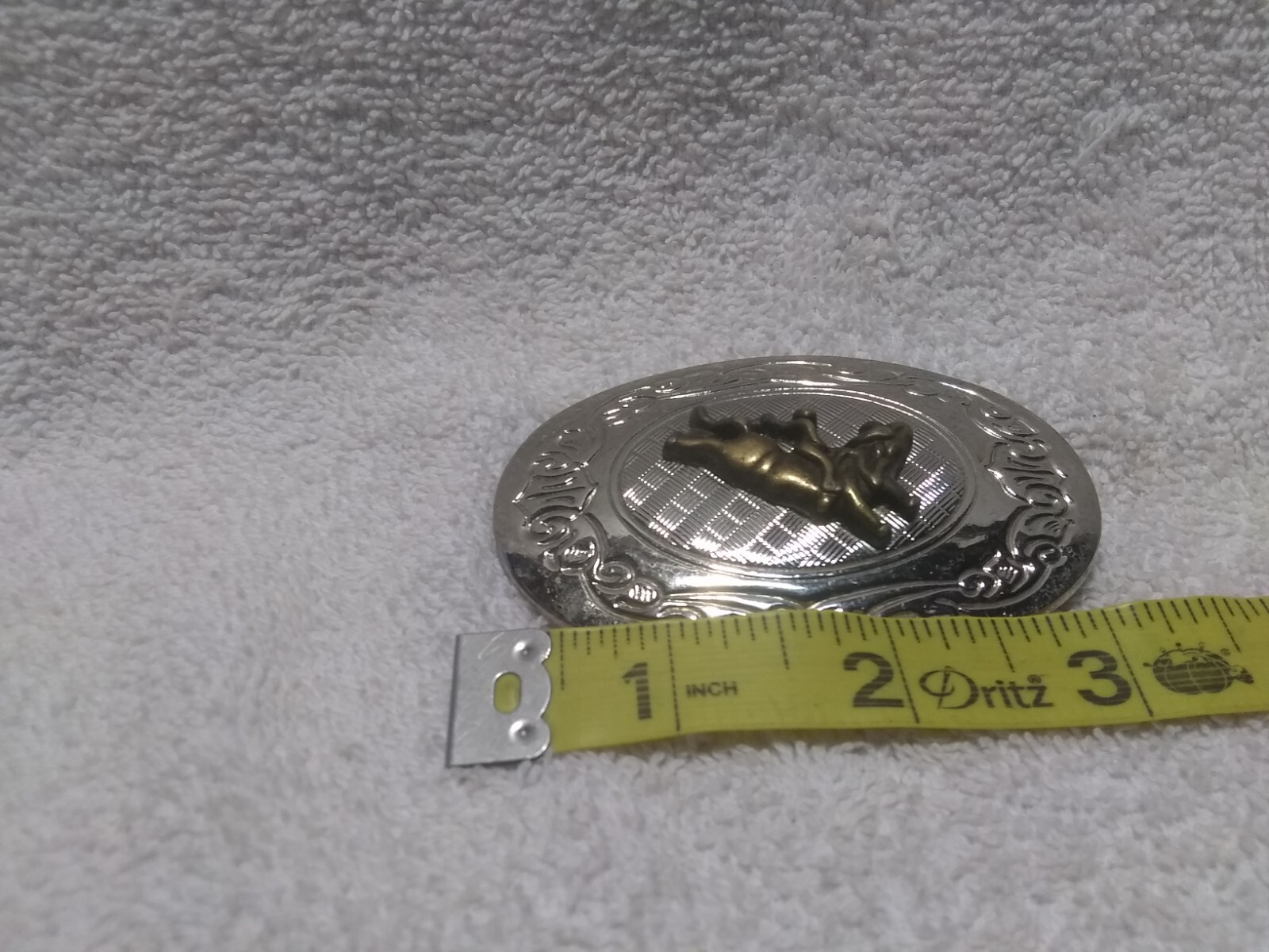 как выглядит Small Silver Gold Western Bull Rider Oval Engraved Belt Buckle Great Condition фото