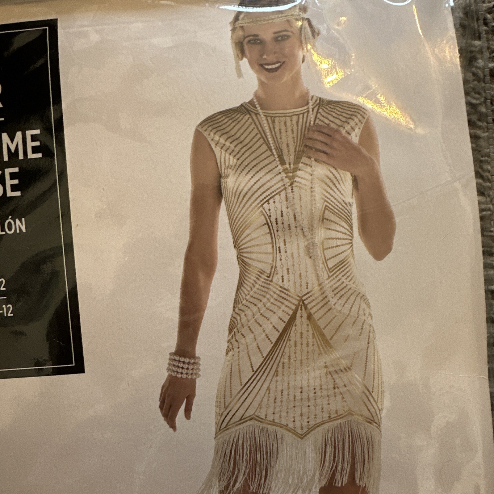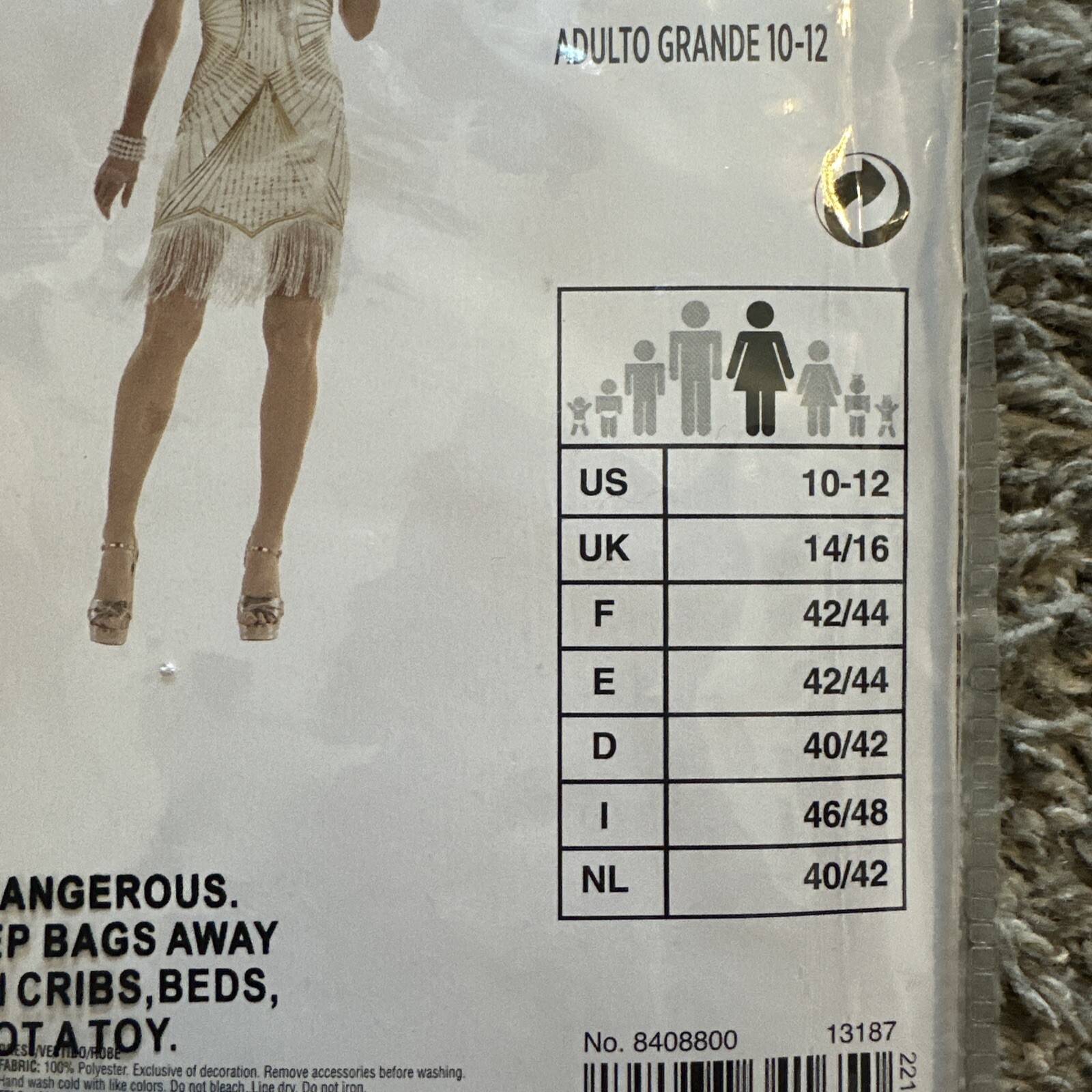 Flirty Flapper 1920's Cream/Gold Halloween Party Costume Adult Large New