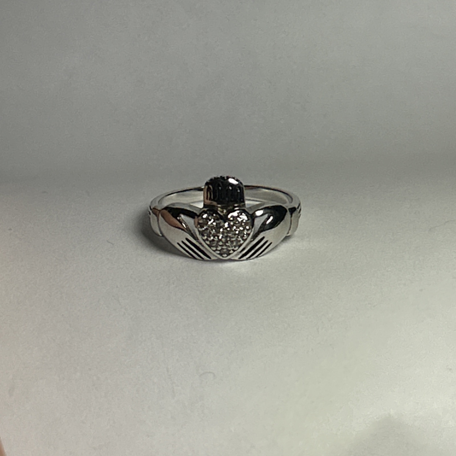 как выглядит 925 Sterling Silver Claddagh Ring CZ Irish loves luck in Sizes 6 7 8 9 Solid NEW фото
