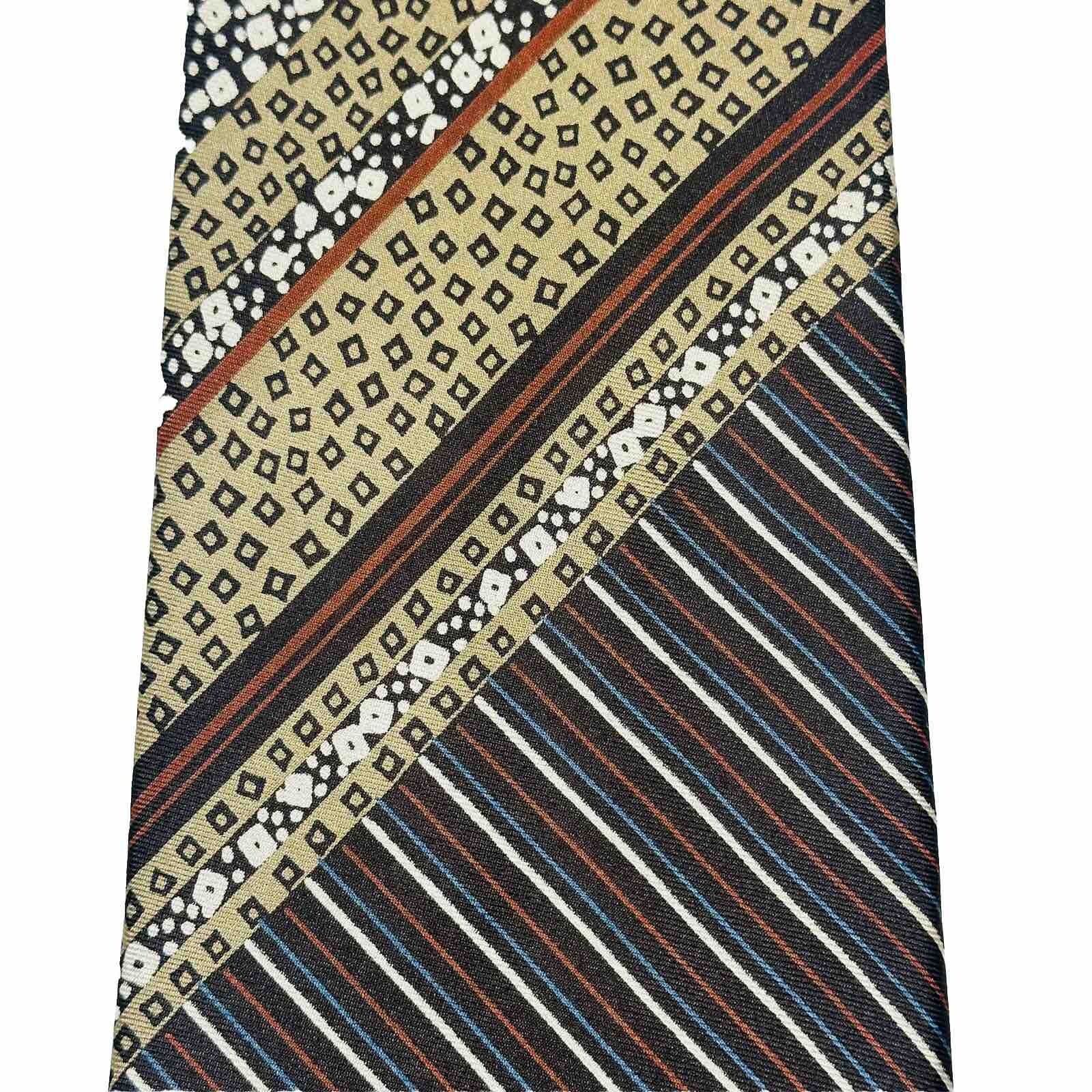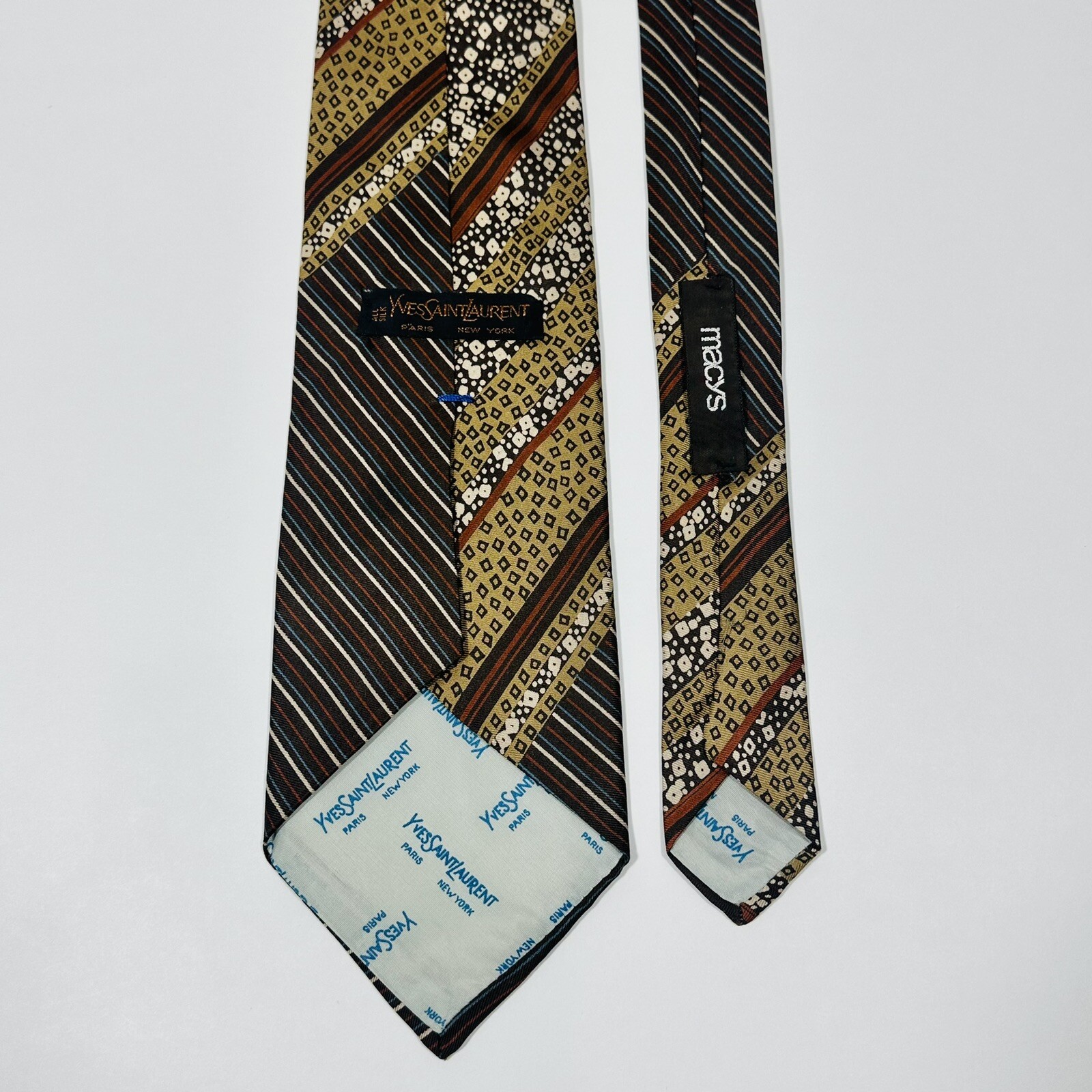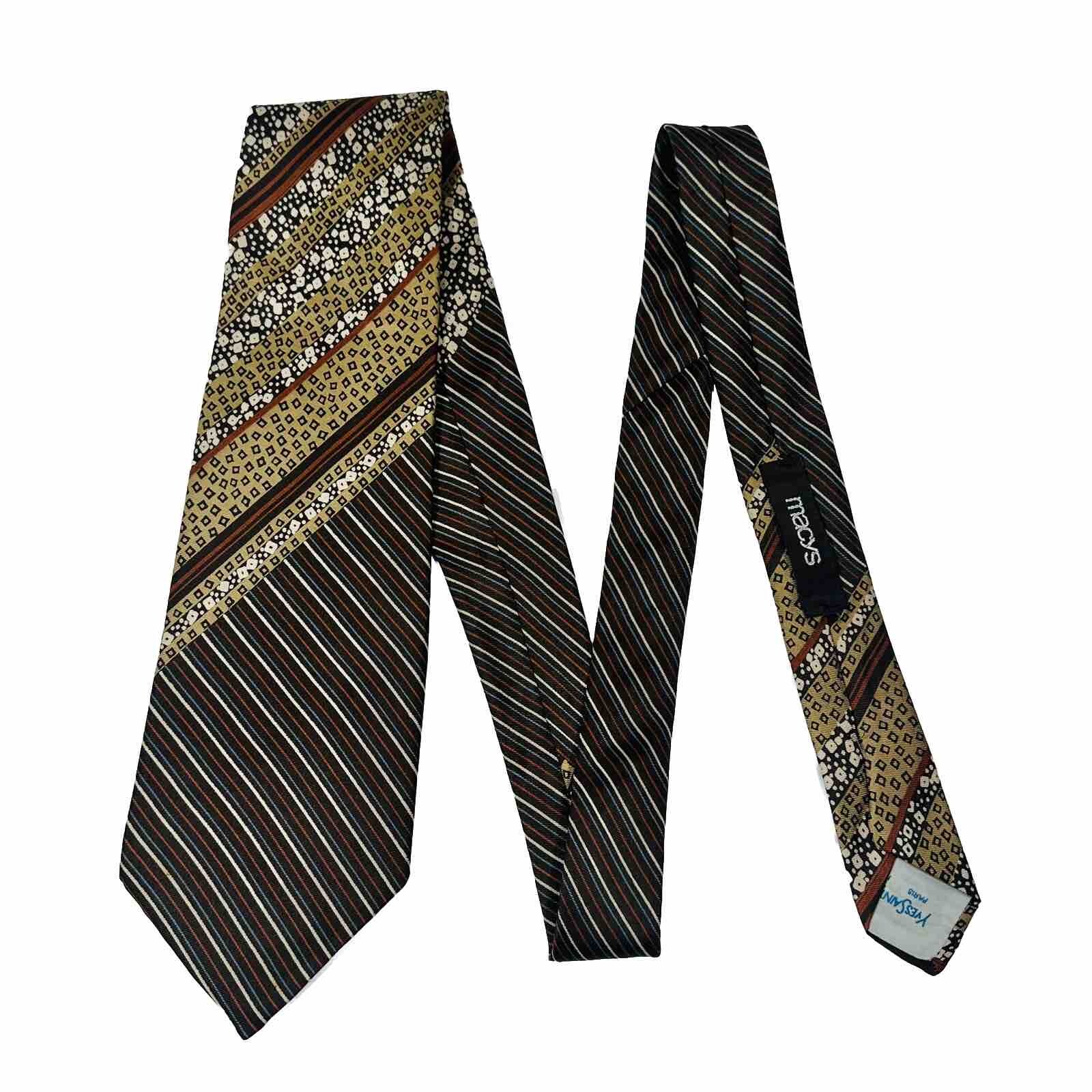 VINTAGE Yves Saint Laurent YSL Brown Tan Multi Pattern Satin Silk Necktie Tie