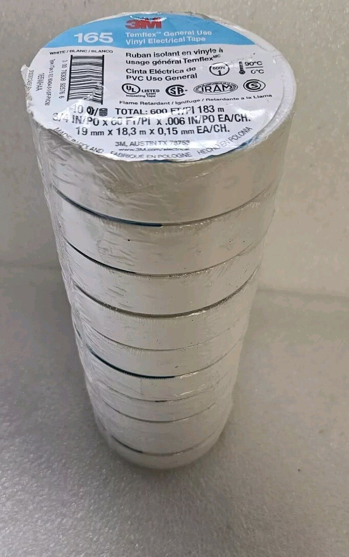 3M 165 TEMFLEX 3/4x 60' WHITE VINYL ELECTRICAL TAPE