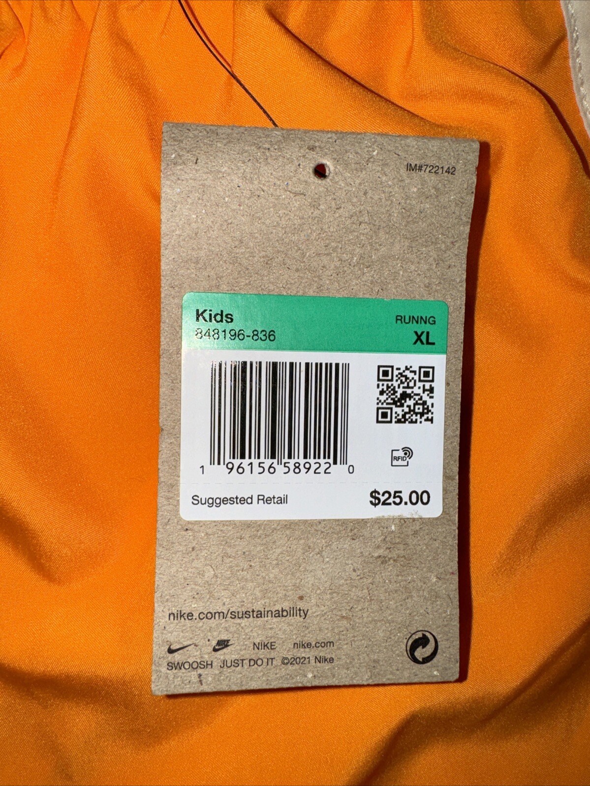 NWT Nike Dri-Fit Orange Standard Fit Running Shorts XL Kids Athletic Youth