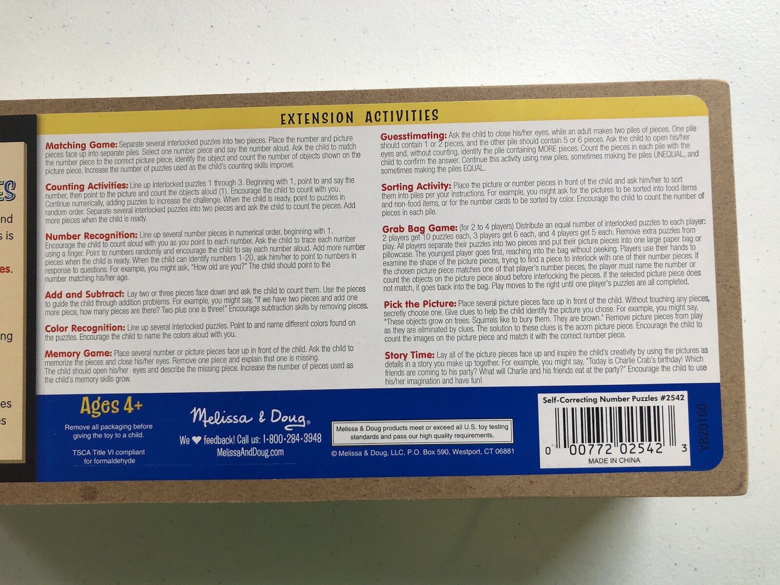Melissa Doug Self-Correcting Wooden Number Counting Math Puzzles Toy