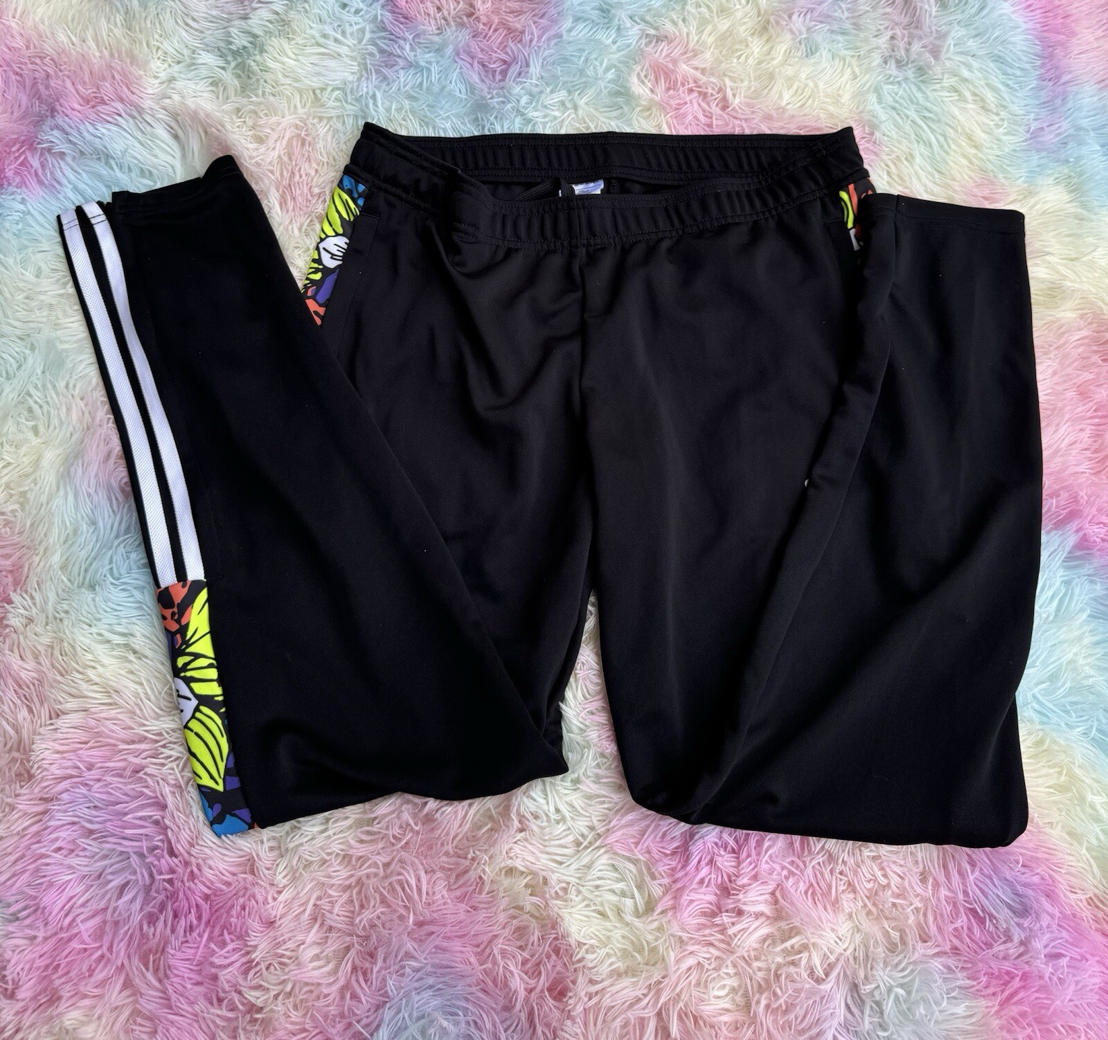 как выглядит adidas Womens Tiro Flower Soccer Track Pant, Black/Multicolor Size Medium фото
