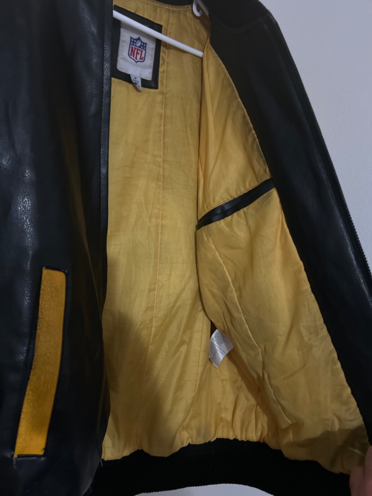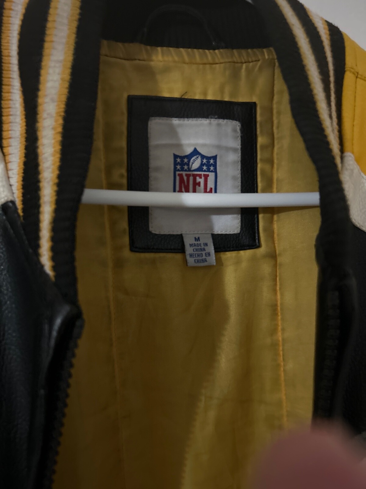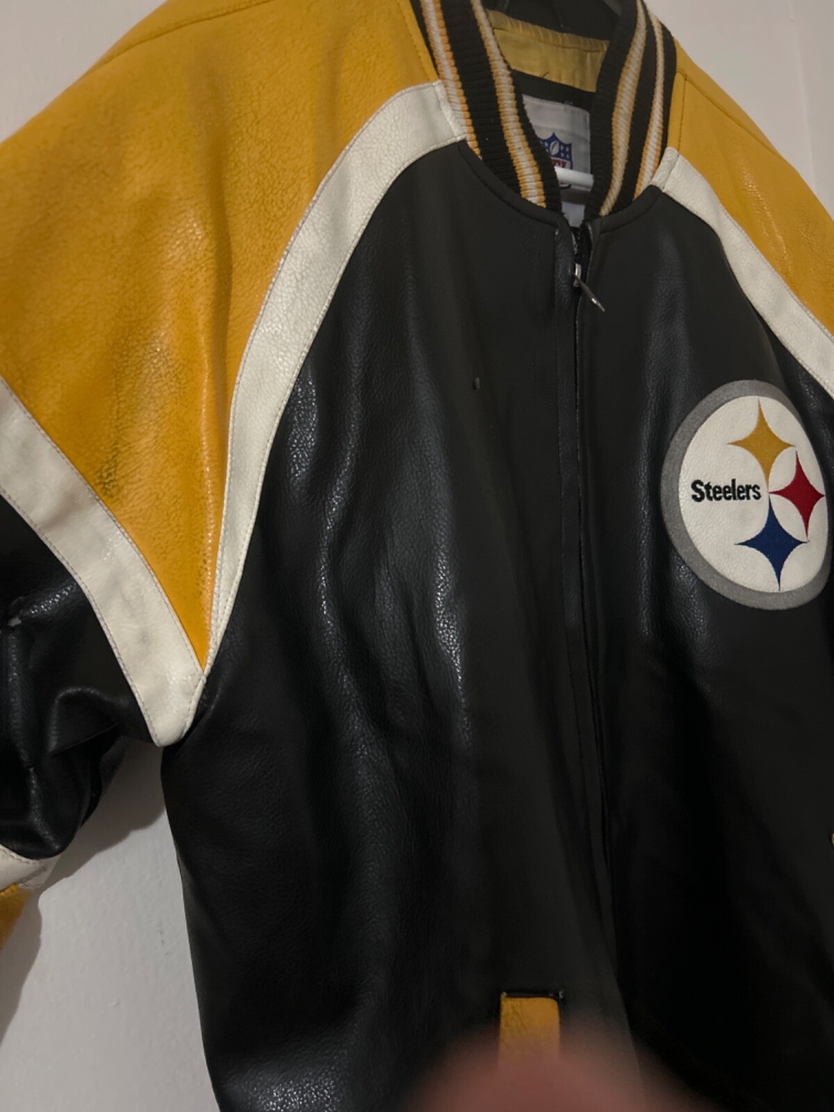 как выглядит Vinyage NFL Pittsburgh Steelers Medium leather BomberVTG G-III Faux Leather фото