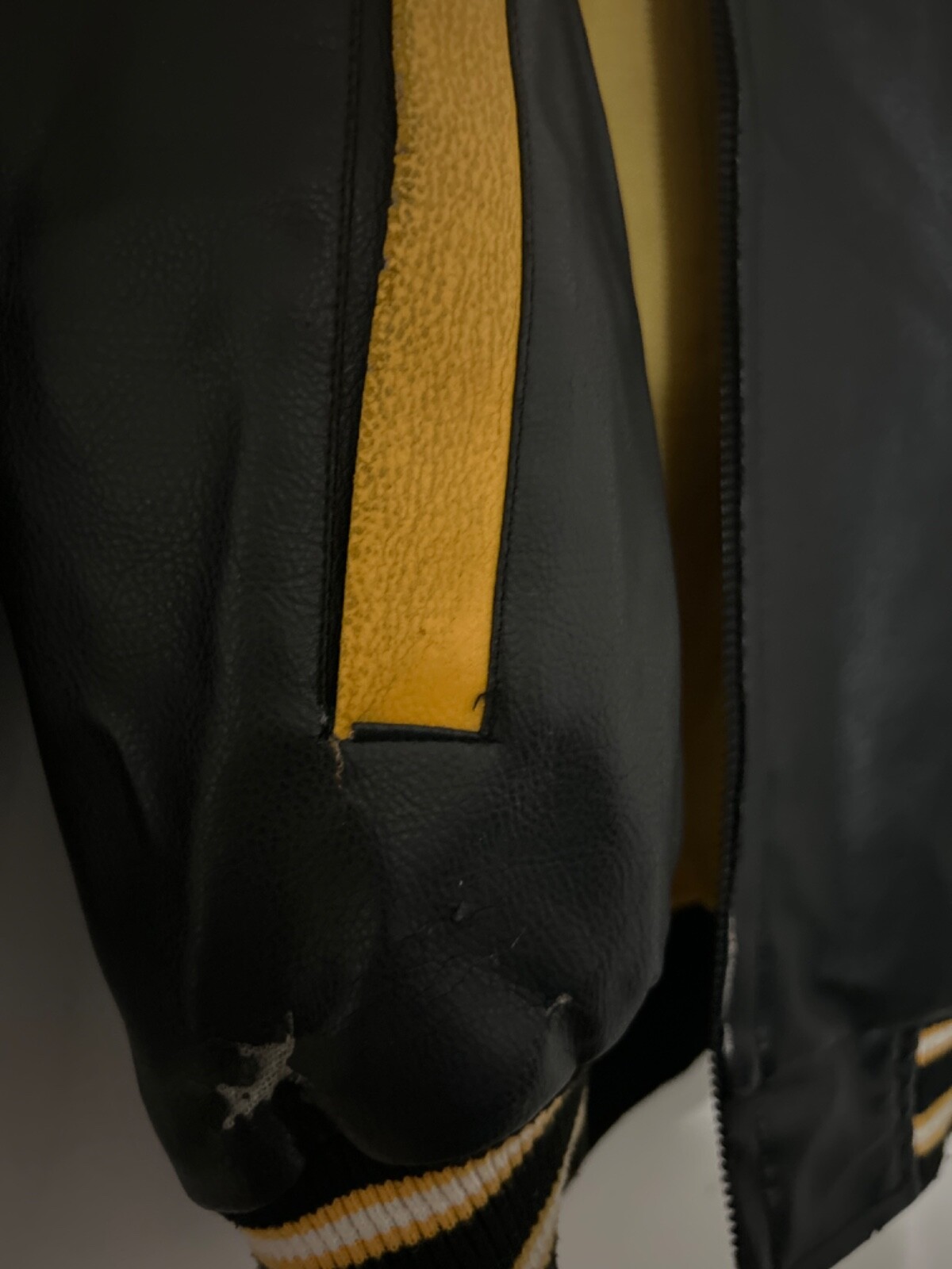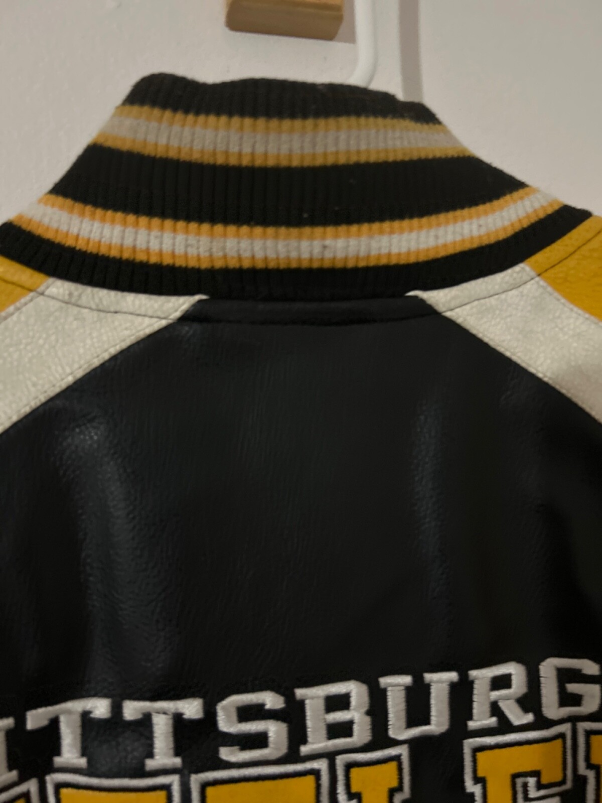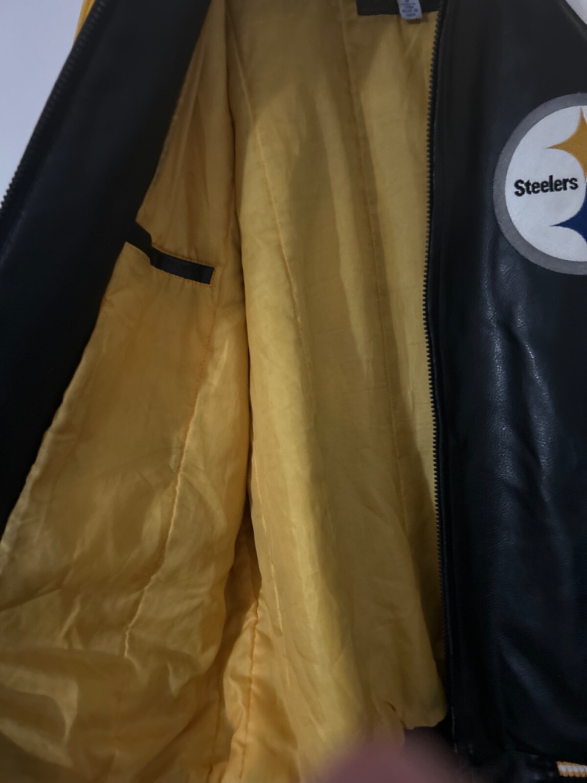 как выглядит Vinyage NFL Pittsburgh Steelers Medium leather BomberVTG G-III Faux Leather фото